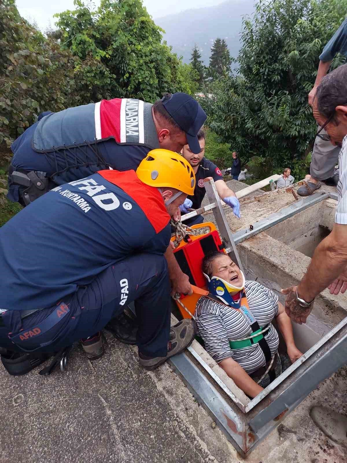 Giresun'da evinin bahçesindeki su deposuna düşen kadını AFAD ve İtfaiye ekipleri kurtardı.