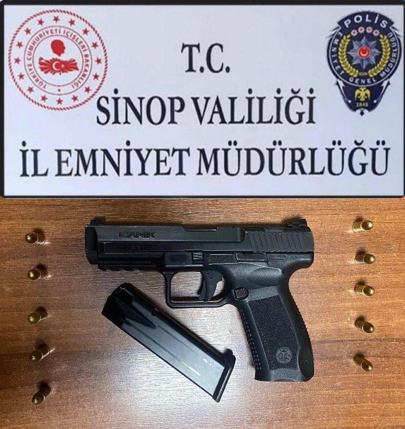 Sinop’ta polis ekipleri tarafından yapılan uygulamada 1 adet ruhsatsız silah ve 10 adet mermi ele geçirildi.