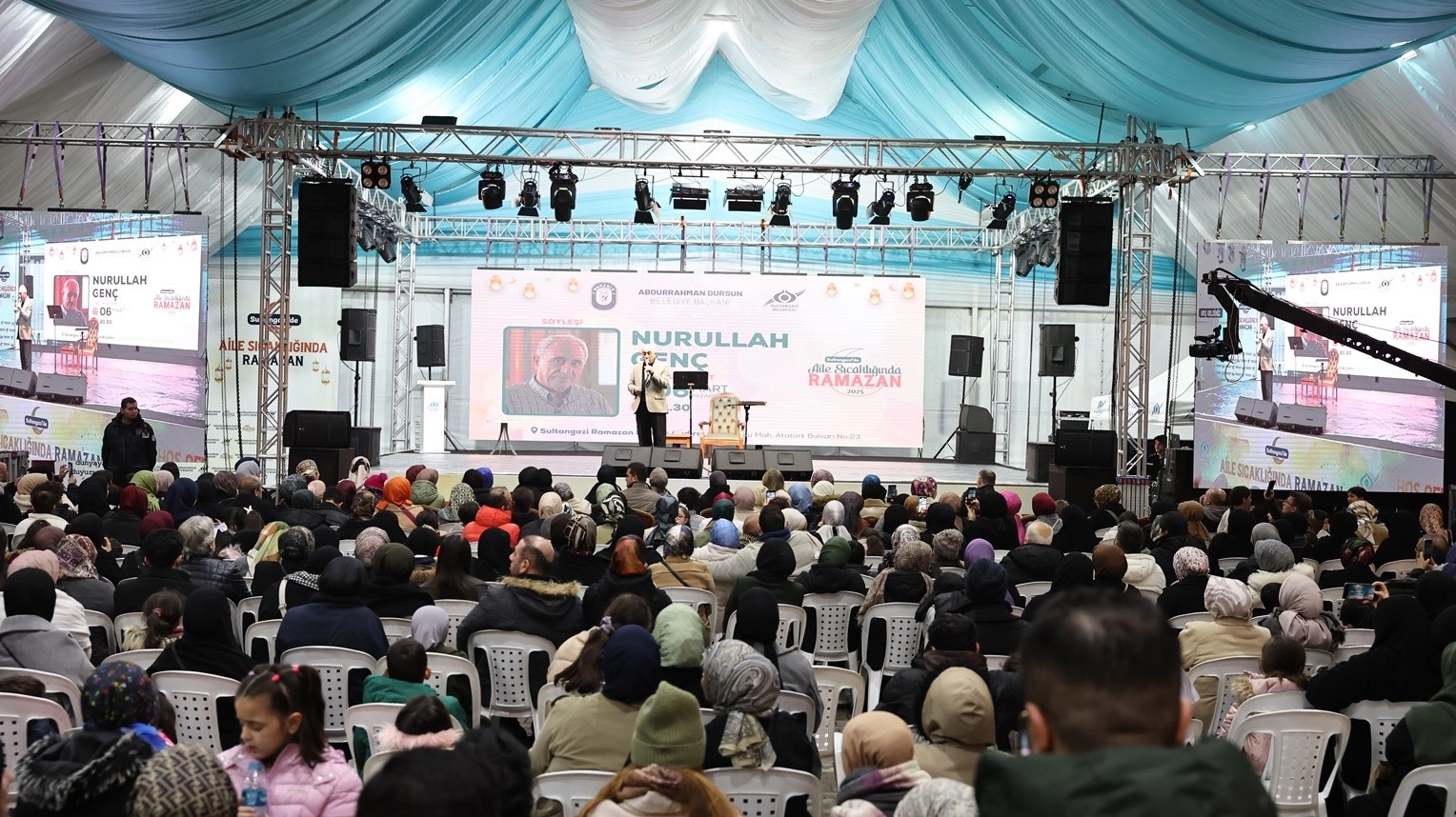 Sultangazi Belediye Başkanı Abdurrahman Dursun, "Ramazan'ın manevi atmosferini komşularımızla paylaşmak için Ramazan Etkinlik Alanı'nda hem yetişkinler hem de çocuklar için programlar düzenliyoruz. Bir ay boyunca komşularımızın sevdiği, kıymetli isimleri Ramazan Etkinlik Alanı'nda iftar sonrası ağırlıyoruz. Ramazan'ın ilk haftasında da birbirinden kıymetli isimleri siz değerli komşularımızla buluşturmanın mutluluğunu yaşıyoruz. Ömer Karaoğlu, Sıtkı Aslanhan ve Nurullah Genç'e eşsiz sohbetleri için teşekkürlerimi iletiyorum. Ramazan boyunca bütün komşularımızı Ramazan Etkinlik Alanı'na davet ediyorum" dedi.