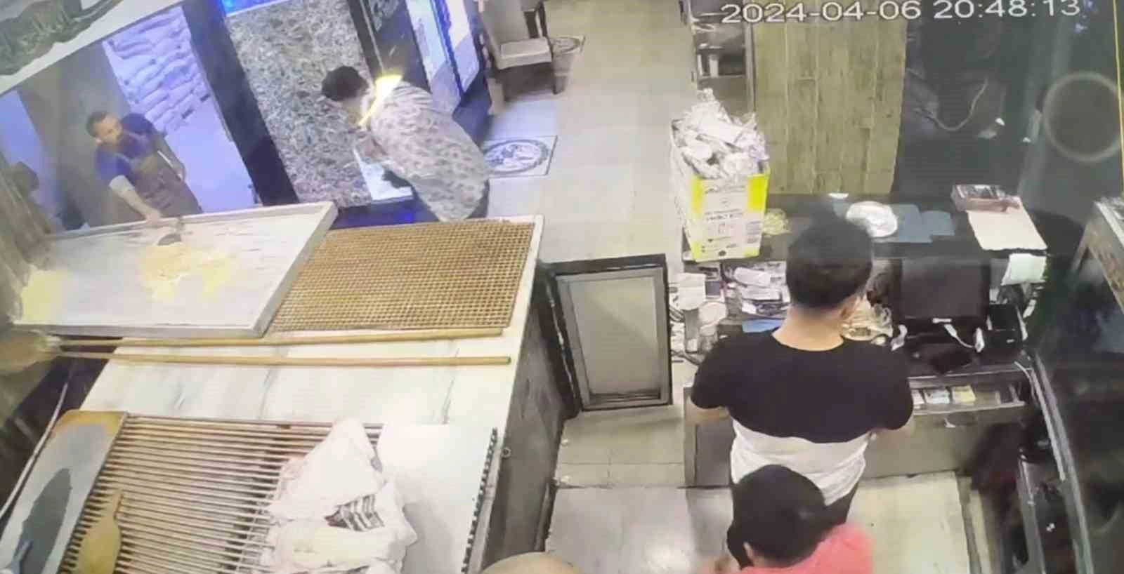 Dükkanın güvenlik kamerasına yansıyan görüntülerinde iş yeri sahibi ve çalışanlarının kasa ile fırın arasında olduğu, mermilerin geldiği anda da saklandıkları görülüyor. Olayı gerçekleştirenlerin kaçarak uzaklaştıkları görülüyor.