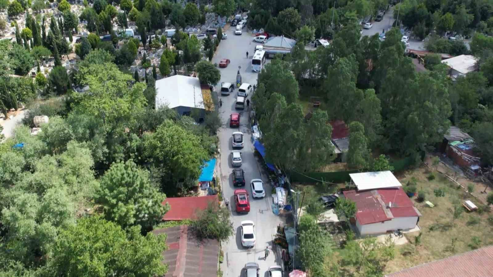 Öte yandan, bayramın ilk günü de benzer yoğunlukların yaşanabileceği öngörülürken, mezarlık yolunda oluşan trafik dron ile görüntülendi.