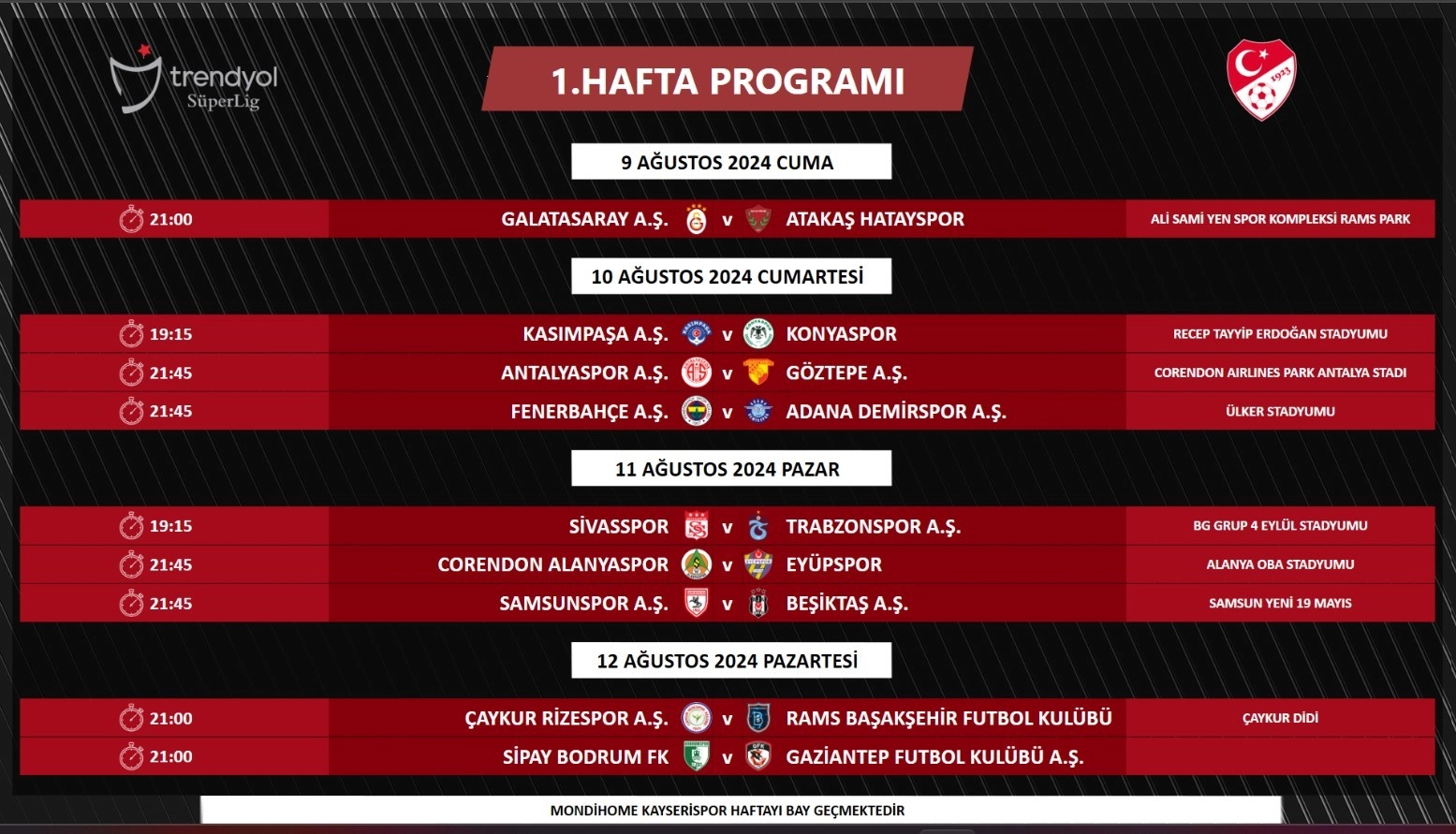 Trendyol Süper Lig'de 1. ve 2. haftanın programı şöyle: