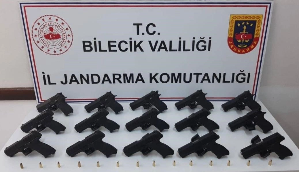 Bilecik İl Jandarma Komutanlığınca Bozüyük'te gerçekleştirilen yol kontrol uygulamasında şüphe üzerine durdurulan araçta; 15 adet ruhsatsız tabanca, şarjör ve 14 adet 9 mm çapında fişek ele geçirildi.