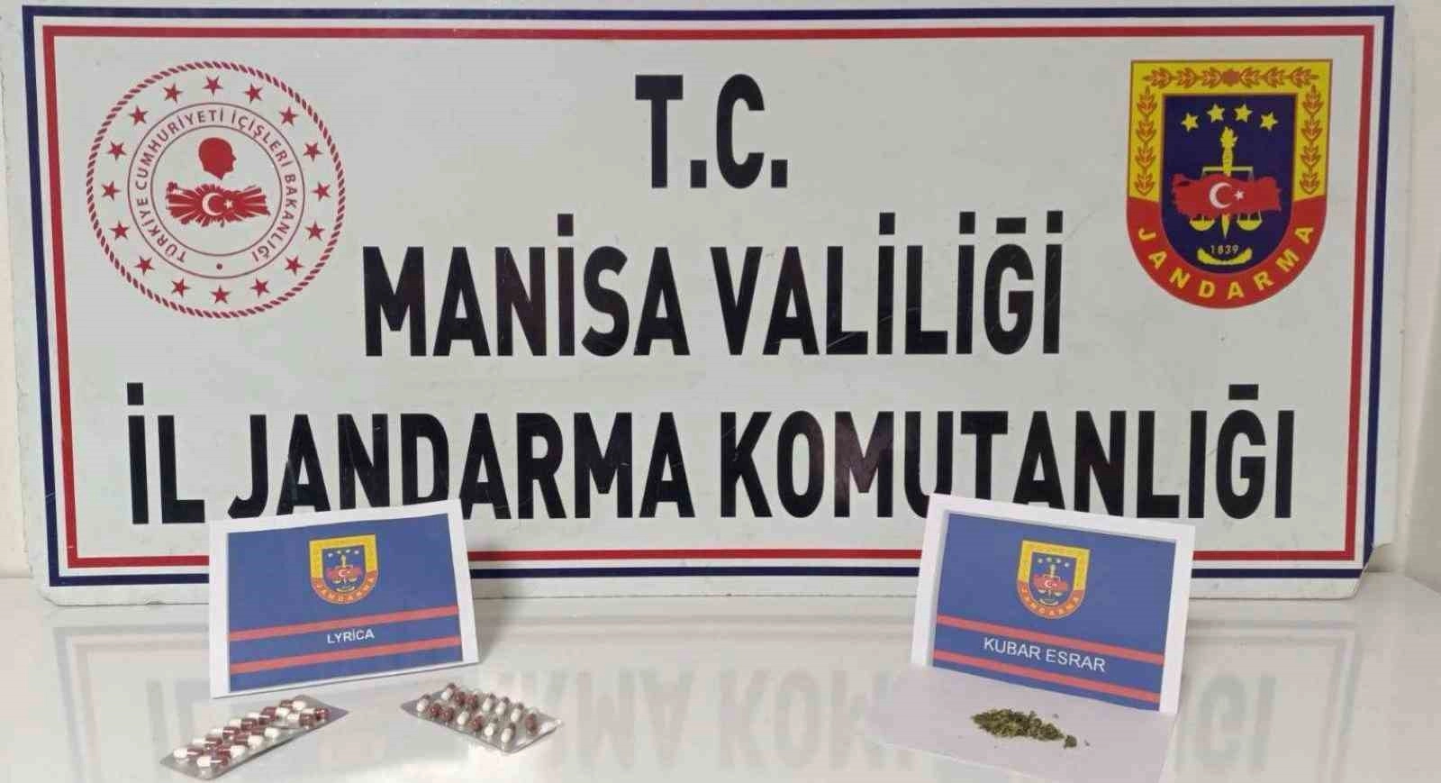 Uyuşturucu veya uyarıcı madde ticareti yapan, nakleden ve kullanan şahıslara yönelik çalışmalarını sürdüren Salihli İlçe Jandarma Komutanlığına bağlı Merkez Karakol Komutanlığı, JASAT ve İstihbarat ekipleri, durumundan şüphelendikleri R.D.'yi (30) durdurup arama yaptı. Şüphelinin yapılan kaba üst aramasında 27 adet Lyrica sentetik hap ve 4 gram kubar esrar ele geçirildi.