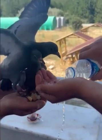Hava sıcaklıklarının mevsim normallerinin üzerinde seyrettiği Bayburt'ta, doğada yaşayan hayvanlar bunaltıcı havada zor günler geçiriyorlar. Sıcak havada susayan güvercinlere Bayburt Orman İşletme Müdürlüğünde görevli personeller, elleriyle su içirdiler. Duyarlı vatandaşların güvercinlere elleriyle su içirdiği anlar yüzlerde tebessüm oluşturdu, yürekleri ısıttı.