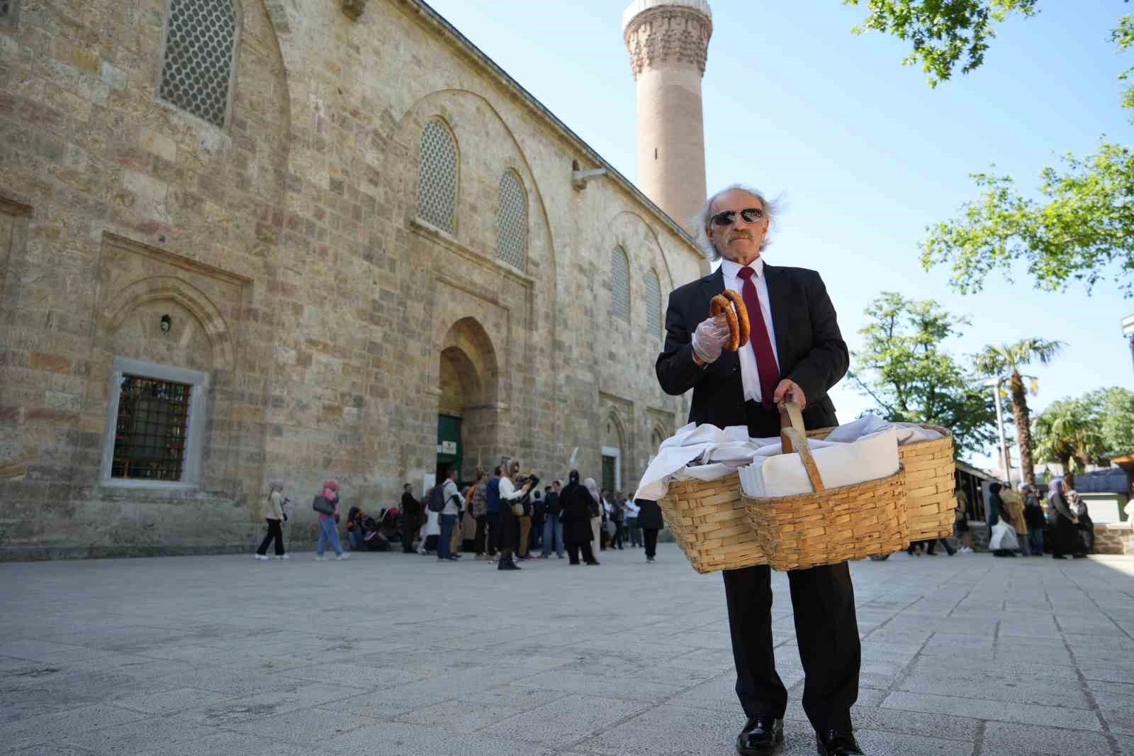 Bursa'da "Kravatlı Simitçi" olarak tanınan Ahmet Berksun (65), öğrenciyken yaptığı simitçiliği, kamudan emekli olduktan sonra da yapmaya karar verdi. Memurluk günlerinde giydiği takım elbiseyi, emekliliğinde de çıkarmayan Berksun, bu şekilde Bursa'nın tarihi noktalarında koluna taktığı sepetiyle simit satmaya başladı. Şıklığının yanı sıra renkli kişiliği ile de çarşı esnafının gönlünde taht kuran Berksun'u ilk görenler fotoğraf çektiriyor.