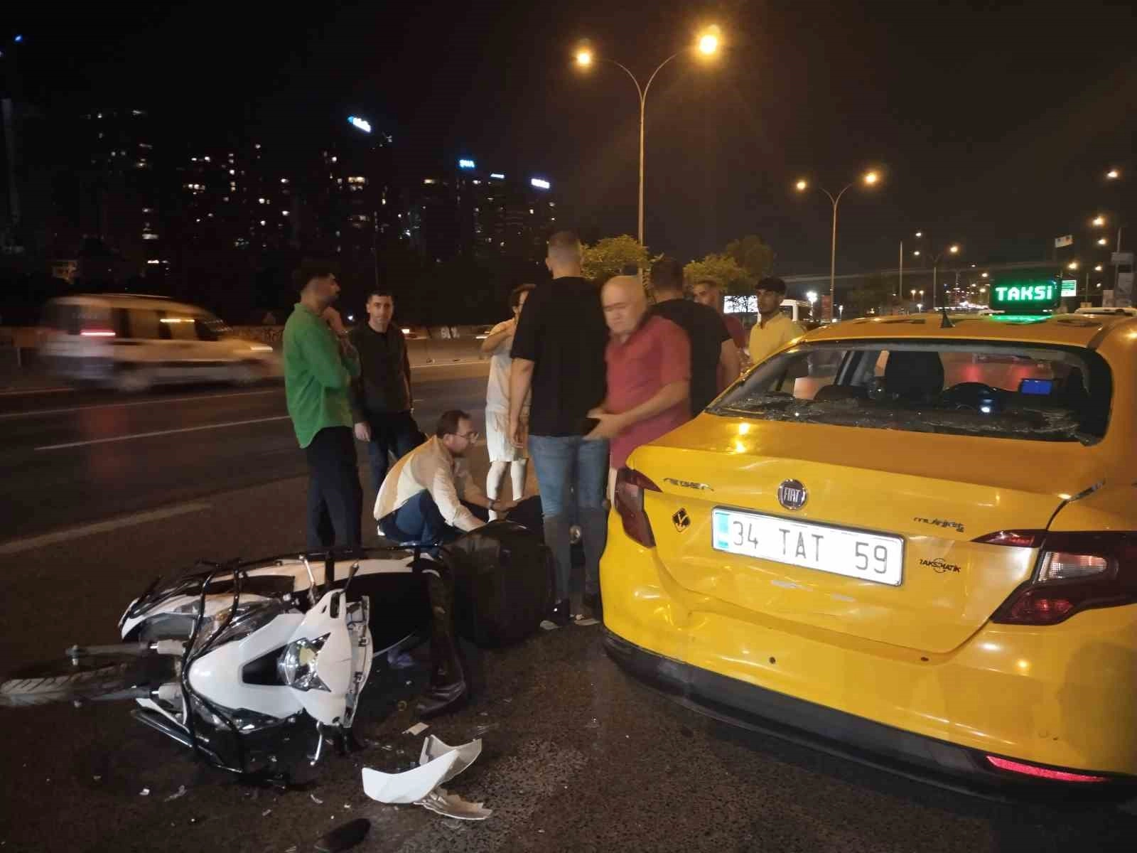 Üsküdar'da D100 Karayolu üzerinde seyir halindeki taksiye motosikletli arkadan çarptı. Kaza sonucu motosiklet sürücüsü yaralanırken takside hasar meydana geldi.
