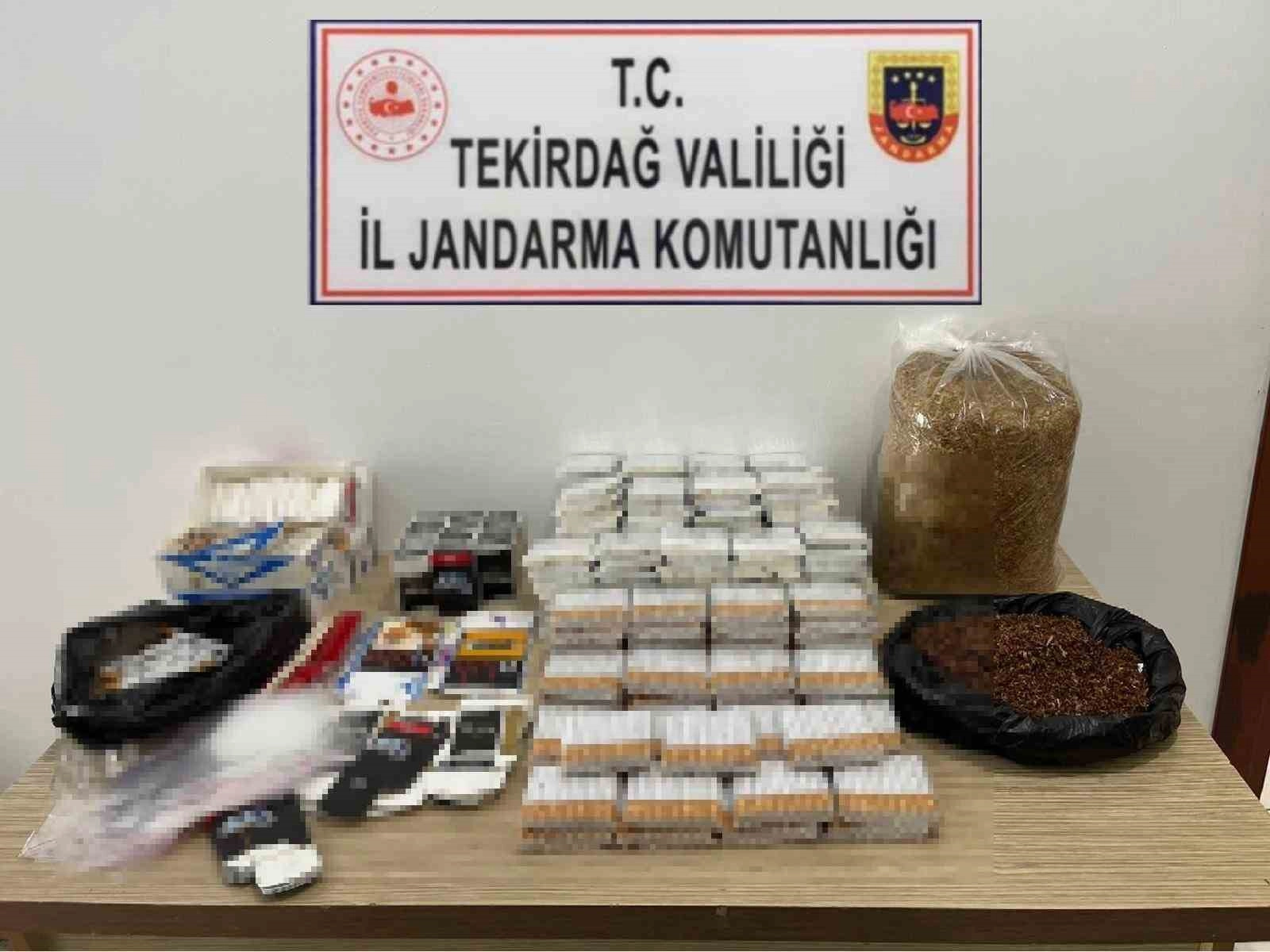 Tekirdağ'ın Saray ilçesinde jandarma ekiplerince makaron ve tütün ele geçirildi.