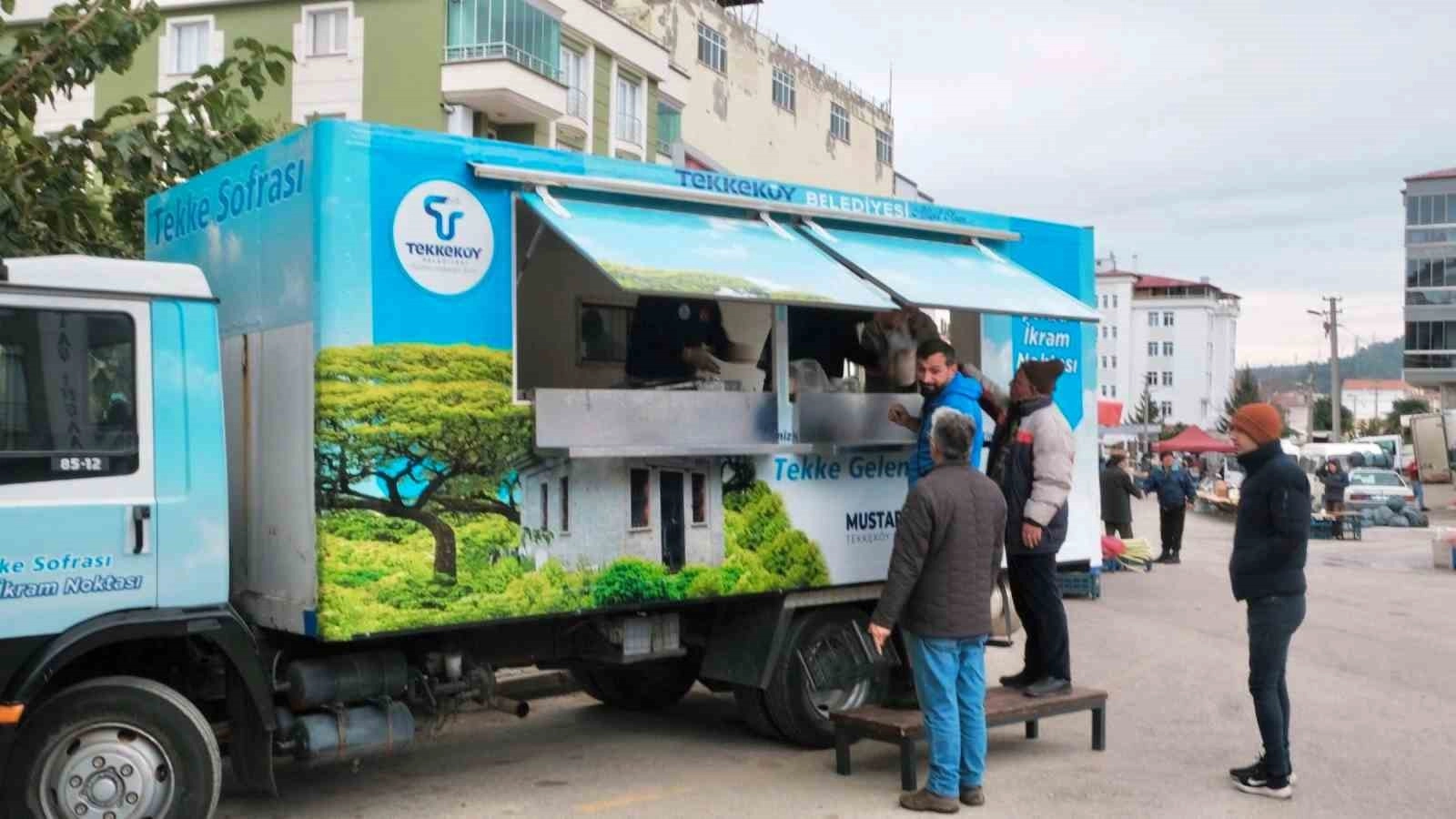 Tekkeköy Belediye Başkanı Mustafa Candal'ın talimatı ile ilçede kurulan halk pazarı yerlerinde dağıtılmak üzere çorba kamyonu hizmet vermeye başladı. Hizmet kapsamında hem pazar esnafı hem de alışverişe gelen vatandaşlar, mobil çorba noktasından ücretsiz olarak çorba, ekmek ve içeceklerini alabiliyorlar.