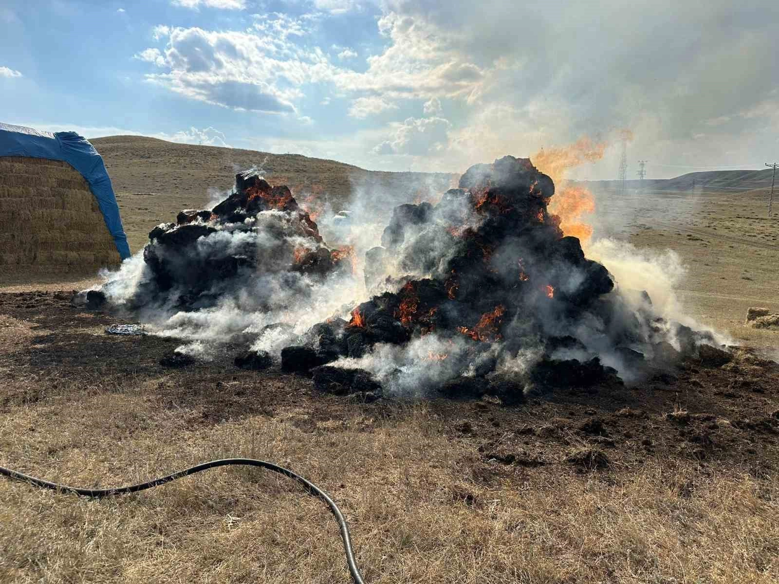 Yangında Fadıl Yazıcı, Nayim Koçak ve Behçet Koçak'a ait 600 balya ot kül oldu.