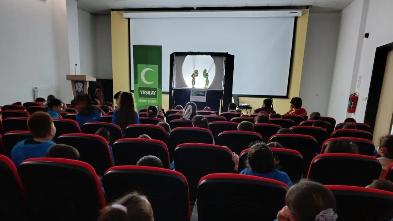 Gerze Atatürk İlkokulu'nda gerçekleştirilen program, "Teknolojinin Bilinçli Kullanımı" konulu Hacivat-Karagöz gölge oyunun sahnelenmesiyle başladı.