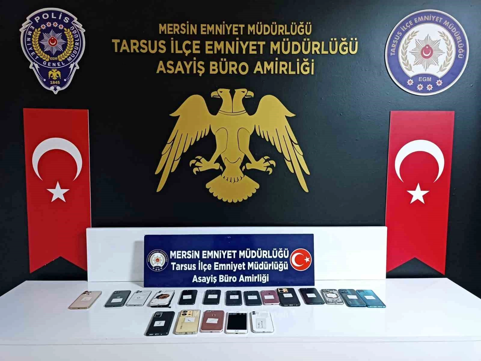 Mersin polisinin yaptığı çalışmada yakalanan hırsızlık şüphelisinin çantasından 17, evinden ise 2 adet telefon çıktı. Telefon tamircisi olduğu öğrenilen şüpheli, çıkarıldığı mahkemece tutuklandı.