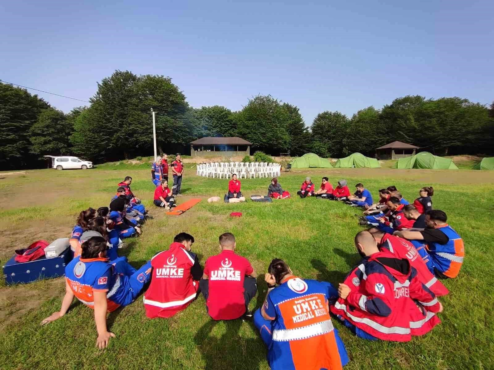 Düzce'de afetlere hazır olabilmek için Ulusal Medikal Kurtarma Ekipleri(UMKE) çalışmalarını sürdürüyor. Bu çerçevede bir yandan ilk yardım eğitimleri vererek vatandaşları bilgilendiren ekipler bir yandan da olası afetler ve trafik kazaları içinde tatbikatlar gerçekleştiriyor. Bu çerçevede 3 gün boyunca Temel UMKE Eğitim ve Tatbikatı Gerçekleştiren ekipler, tatbikatı başarı ile sonuçlandırdı.