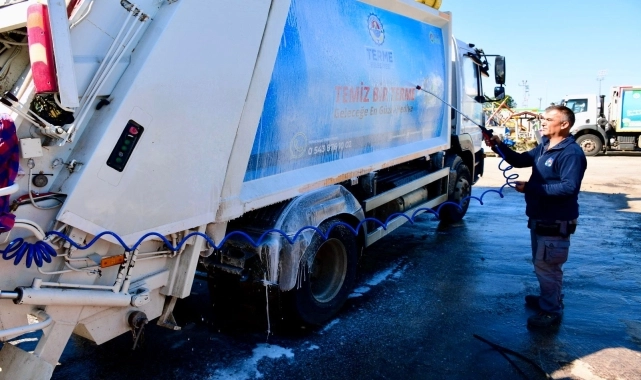 Belediyeye ait temizlik araçları da periyodik olarak yıkanarak dezenfekte ediliyor, hijyen standartlarına uygun şekilde hizmet vermeleri sağlanıyor.