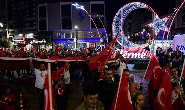 Ellerinde Türk bayrakları ve fenerlerle öğretmenevi önünde toplanan vatandaşlar, bando takımı eşliğinde Cumhuriyet ve 15 Temmuz Milli İrade Meydanı'na kadar yürüdü.