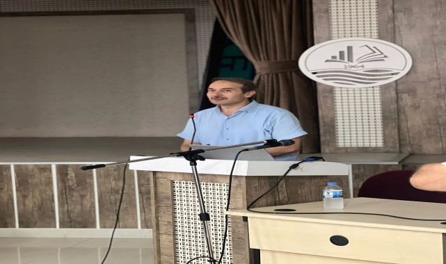İlçe Tarım ve Orman Müdürlüğü tarafından Halk Eğitimi Merkezinde yapılan toplantıda İlçe Tarım ve Orman Müdürü Tuncay Demir, kahverengi kokarca ve zararları hakkında bilgi verdi.
