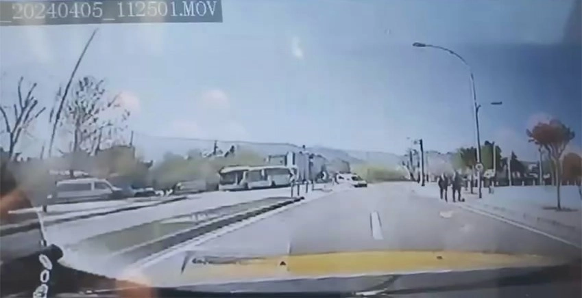Olay, merkez Osmangazi ilçesi Ali Ferruh Yücel Caddesi üzerinde meydana geldi. Edinilen bilgiye göre, seyir halindeyken direksiyon hakimiyetini kaybeden sürücü, bir anda ters şeride girdi. Facianın eşiğinden dönülen dakikalar, anbean bir taksi aracının kamerasına yansıdı. Olayda, şans eseri kimse yara almadı.