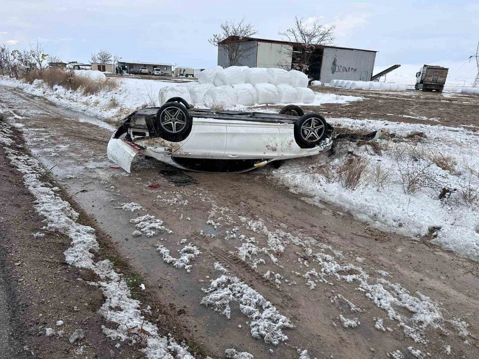 Konya'nın Ereğli ilçesinde tipi ve buzlanma nedeniyle sürücüsünün direksiyon hakimiyetini kaybettiği otomobil takla attı. Kazada 4 kişi yaralandı.