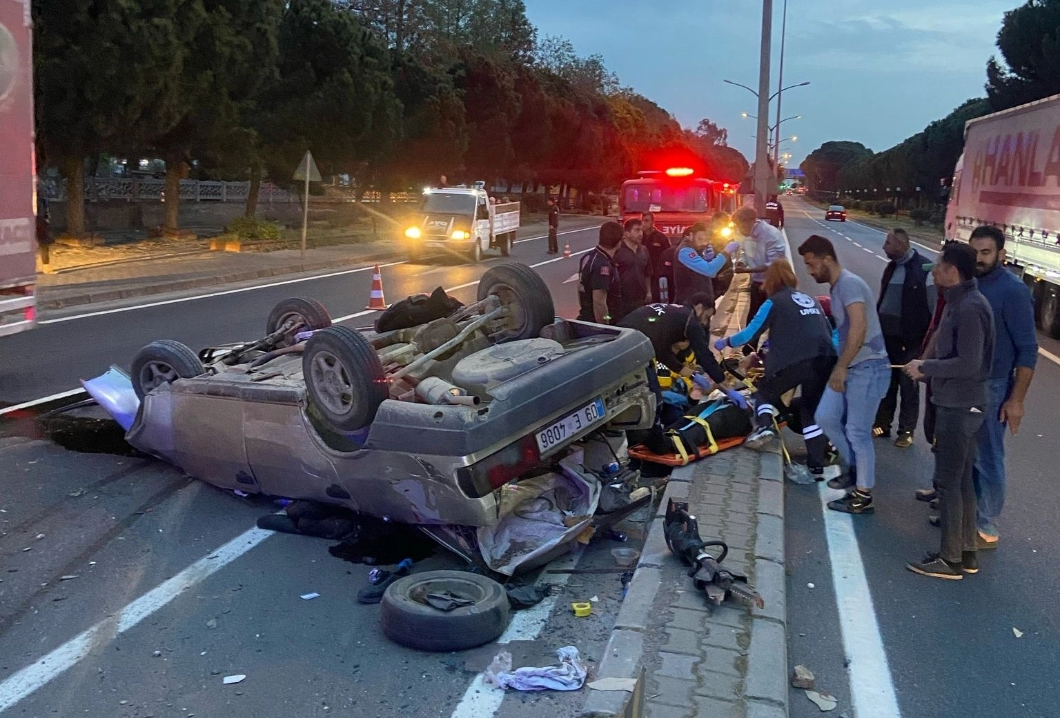 Kaza, Aydın-Denizli Karayolu'nda sabah saatlerinde meydana geldi. Edinilen bilgiye göre, Y.A. idaresindeki 09 AKB 458 plakalı Fiat Tofaş otomobil sürücüsünün henüz bilinmeyen bir nedenle direksiyon hakimiyetini kaybetmesi sonucu yoldan çıktı. Refüje çarparak takla atan araç ters döndü. Kazayı görenler durumu 112 Acil Çağrı Merkezi'ne bildirdi. İhbar üzerine bölgeye sağlık, itfaiye ve polis ekipleri sevk edildi. Kısa sürede olay yerine gelen Aydın Büyükşehir Belediyesi İtfaiye Daire Başkanlığı ekipleri otomobil içerisinde sıkışan sürücü Y.A. ve yolcu konumundaki 2 şahsı çıkartarak sağlık ekiplerine teslim etti. Sağlık ekipleri tarafından ilk müdahaleleri yapılan yaralılar ambulanslarla Nazilli Devlet Hastanesi'ne kaldırıldı. Kaza dolayısıyla trafiğe kapanan yol, otomobilin çekici marifeti ile olay yerinden kaldırılmasının ardından tekrar normale döndü.