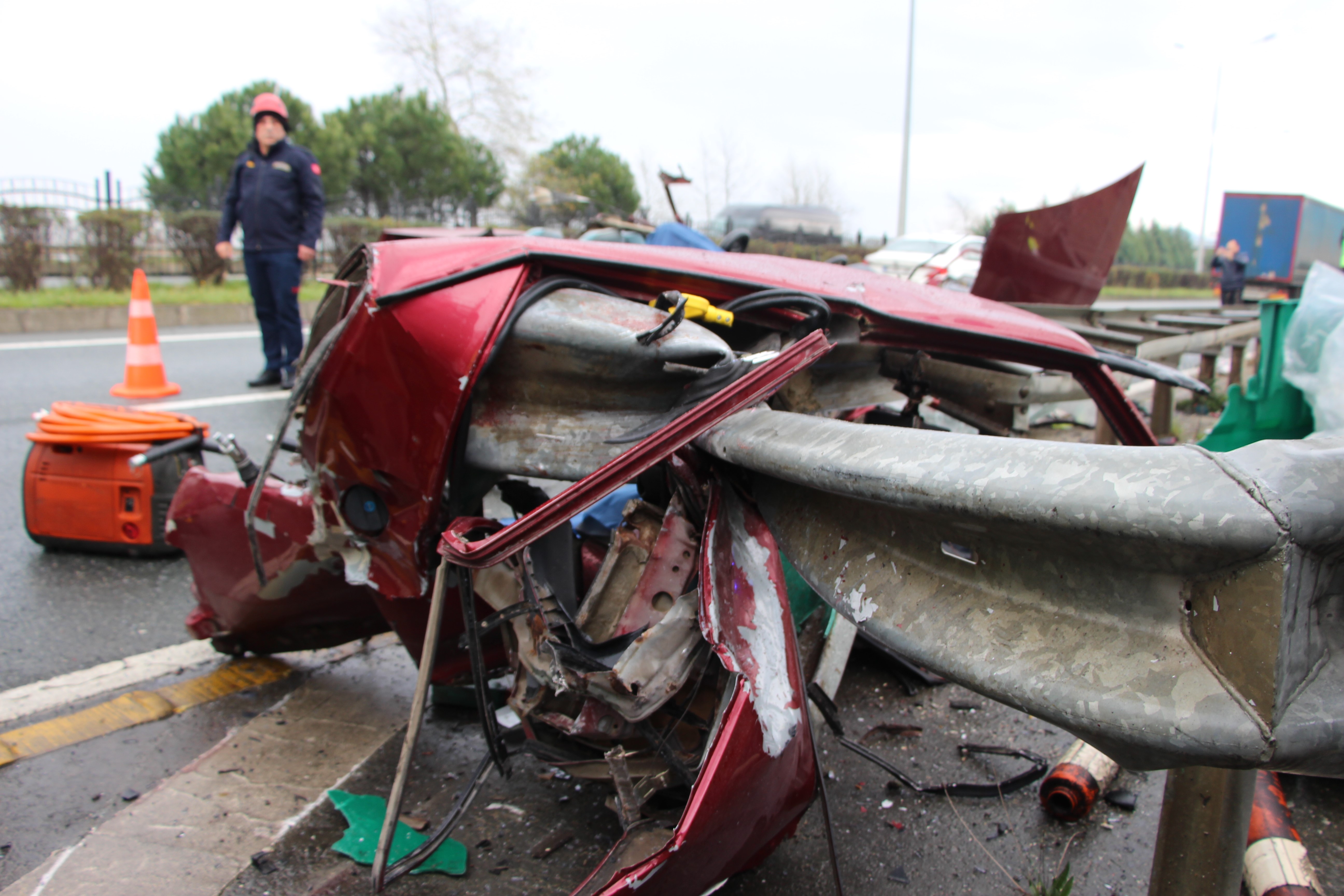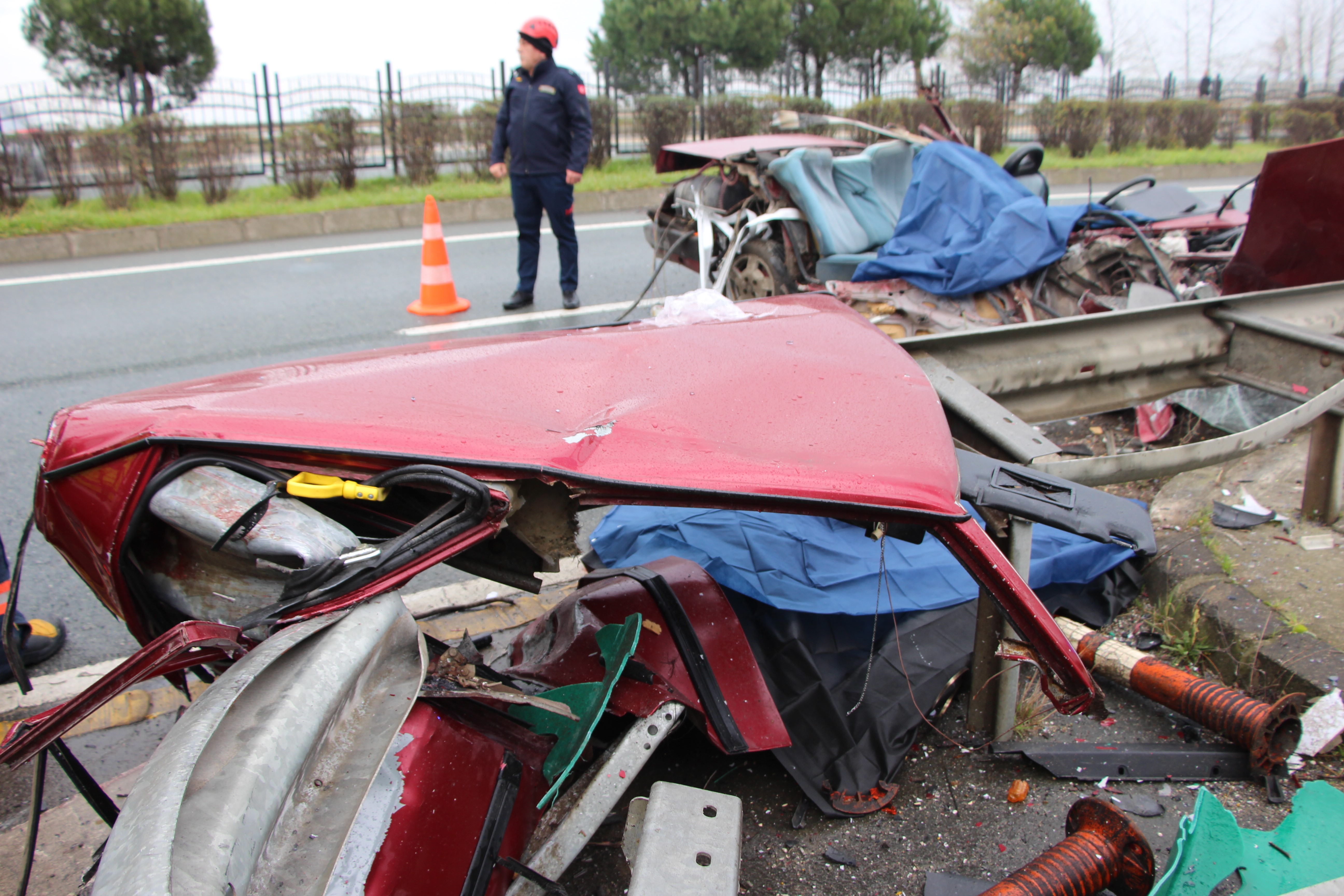 Trabzon'un Sürmene ilçesinde bariyere saplanan otomobilin ikiye bölünmesi sonucu 2 kişi hayatını kaybetti, 2 kişi ise yaralandı.
