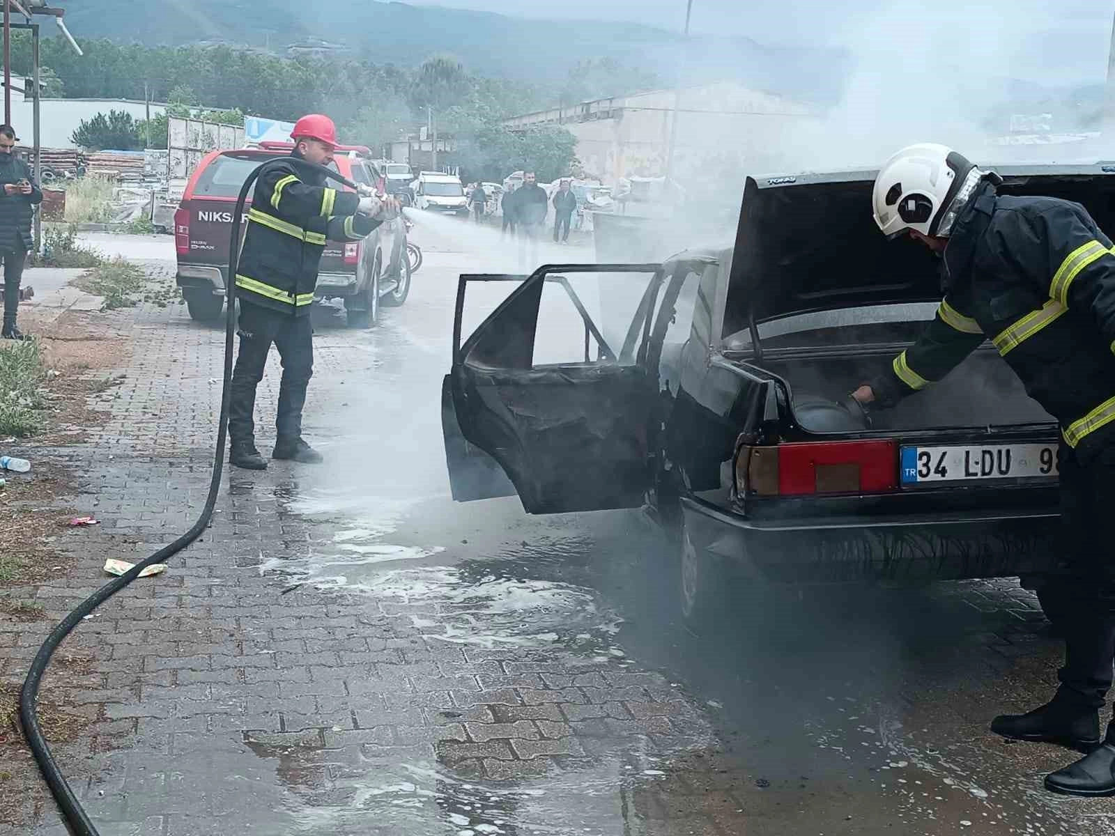 Niksar Belediyesi itfaiye ekiplerinin çalışması sonucu söndürülen yangında otomobil kullanılamaz hale geldi.