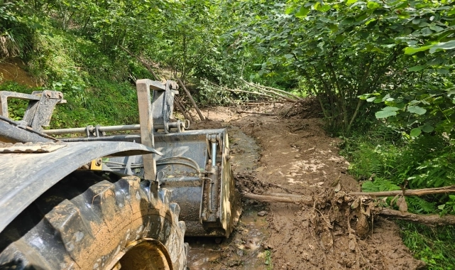 Trabzon'un Arsin, Araklı ve Yomra ilçelerinde dün etkili olan sağanağın ardından su taşkını ve heyelanlar nedeniyle başlatılan temizleme çalışmaları sürüyor.