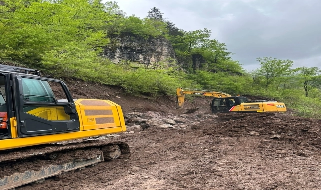 Trabzon Büyükşehir Belediyesi, ilçelerde yol, beton ve duvar çalışmalarına devam ediyor.