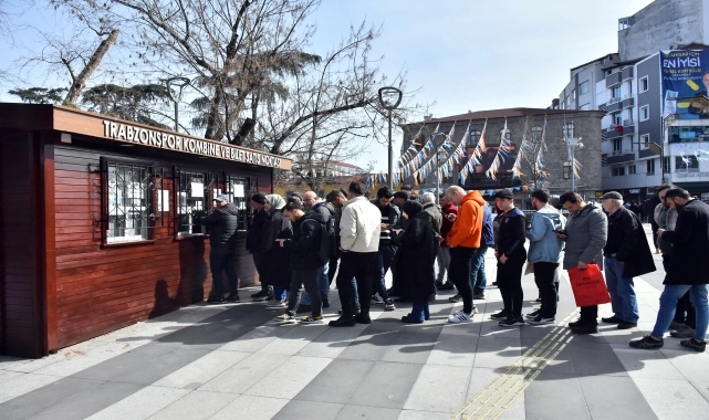 Bordo-mavili taraftarlar, Atatürk Alanı'ndaki bilet satış noktası önünde yoğunluk oluşturdu.