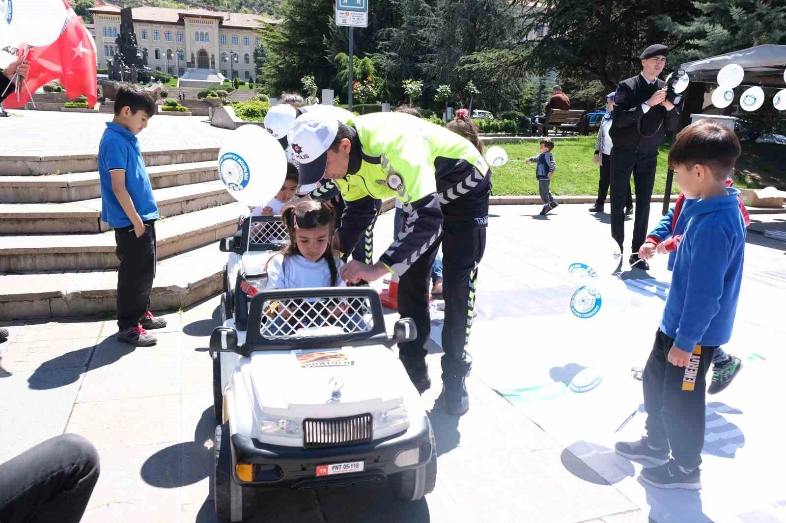 Kastamonu'da Karayolu Trafik Güvenliği Günü ve Karayolu Trafik Haftası dolayısıyla Cumhuriyet Meydanı'nda düzenlenen etkinlikte çocuklar trafik kuralları ile ilgili uygulamalı olarak bilgilendirilirken, trafike ekipleri tarafından yapılan denetimde ise vatandaşlara trafik kuralları anlatıldı.