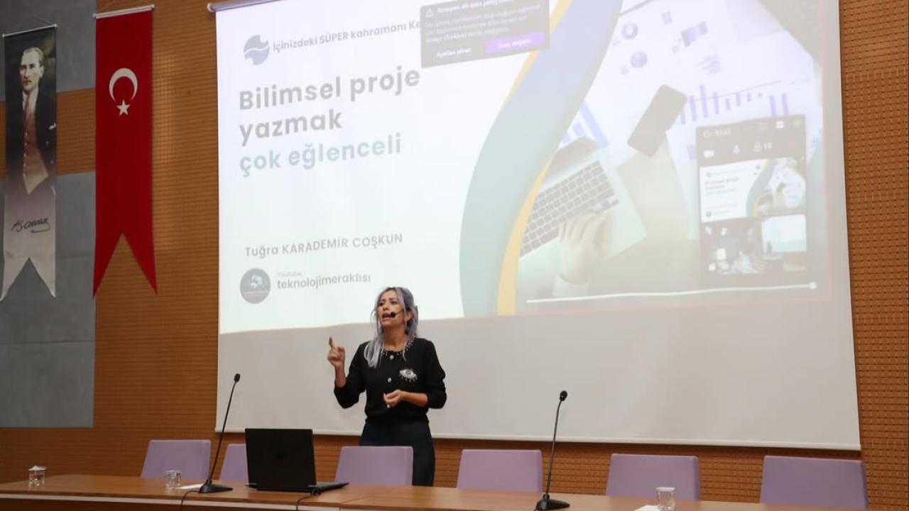 Toplantının ilk bölümünde Doç. Dr. Tuğra Karademir Coşkun, "Neden proje yapmalıyız?" ve "İçimizdeki gücü nasıl görünür kılarız?" başlıkları altında katılımcılara motivasyon aşılayan bir sunum yaptı.