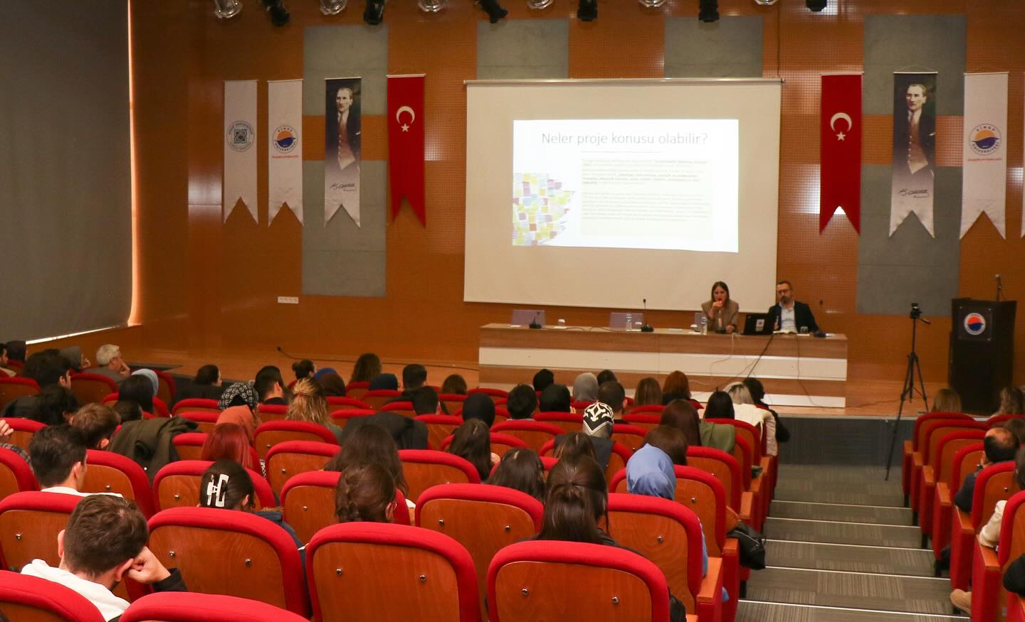 Programda Mühendislik ve Mimarlık Fakültesi Öğretim Üyesi Prof. Dr. Murat Sarıkaya ve Eğitim Fakültesi Öğretim Üyesi Doç. Dr. Esra Bozkurt Altan, 2209-A/2209-B programı üzerine sunum yaparak, başvuru süreci ve proje örnekleri hakkında bilgiler verdiler.