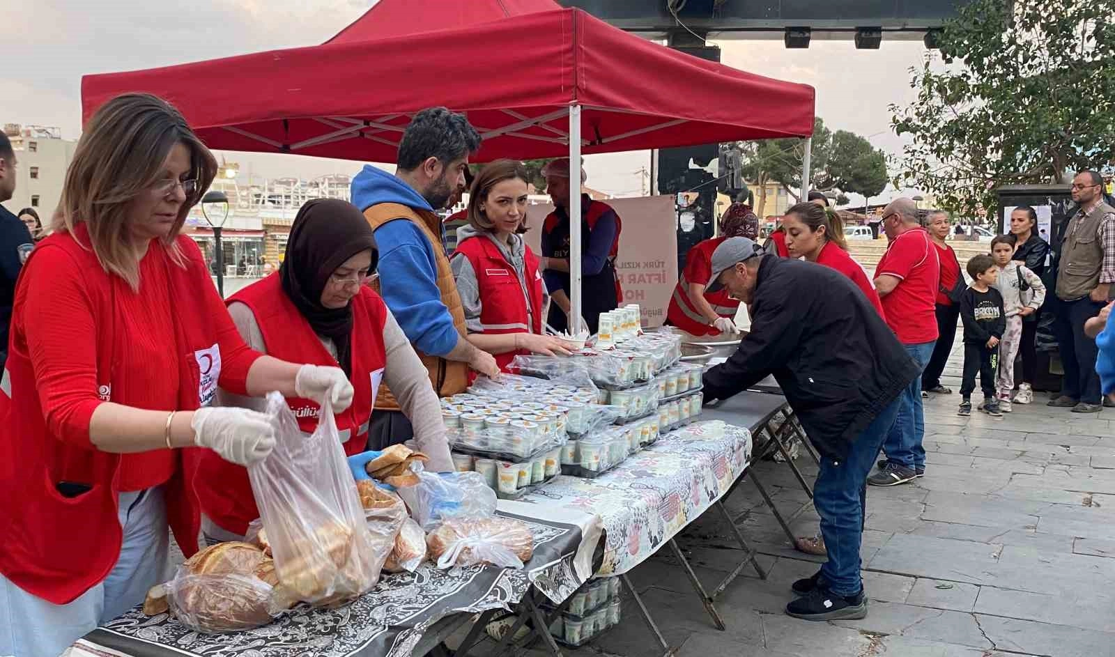 Manisa'nın Alaşehir ilçesinde Türk Kızılay tarafından, Alaşehirli yardımseverlerin desteğiyle Ramazan ayı boyunca 11 bin kişiye iftar yemeği verildi.