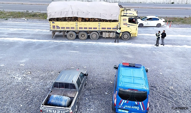 İlçe Jandarma Komutanlığı ve Orman İşletme Müdürlüğü ekiplerince yapılan denetimde, sürücülerin taşıma belgeleri ve damgaya tabi ürünlerin damgalama işlemleri kontrol edildi.