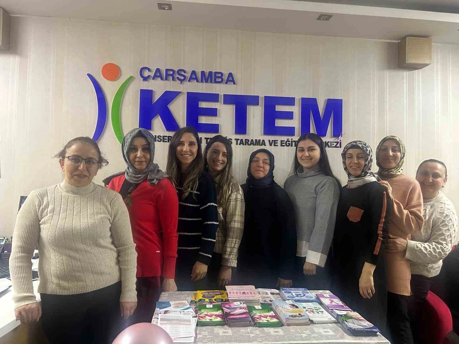 Çarşamba KETEM'de açılan stantta, kanser ile mücadele ve kansere karşı alınacak tedbirler konusunda vatandaşlar bilgilendirildi. Kanserin dünya genelinde giderek artan bir sağlık problemi haline geldiğini söyleyen Dr. Nur Cenik, "Buna bağlı olarak toplumlarda önemli bir sosyoekonomik yüke, bireylerde de maddi ve manevi zorluklara yol açabilmektedir. Tüm bunların yanında, kanser türlerinin birçoğunun önlenebilir olması, Dünya Kanser Günü'ne verilmesi gereken önemin de giderek artmasına yol açmaktadır. Son istatistiklere göre, Türkiye'de her yıl ortalama 170 bin kişiye kanser teşhisi konulmaktadır. Türkiye'de erkeklerde en sık görülen türler, prostat ve sigara kullanımı ile ilişkilendirilebilen akciğer kanserleridir. Kadınlarda en sık görülen türün ise meme kanseri olduğu bilinmektedir. Obeziteye bağlı oluşan kanserlerin ise daha çok kadınları etkilediği bilinmektedir" diye konuştu.