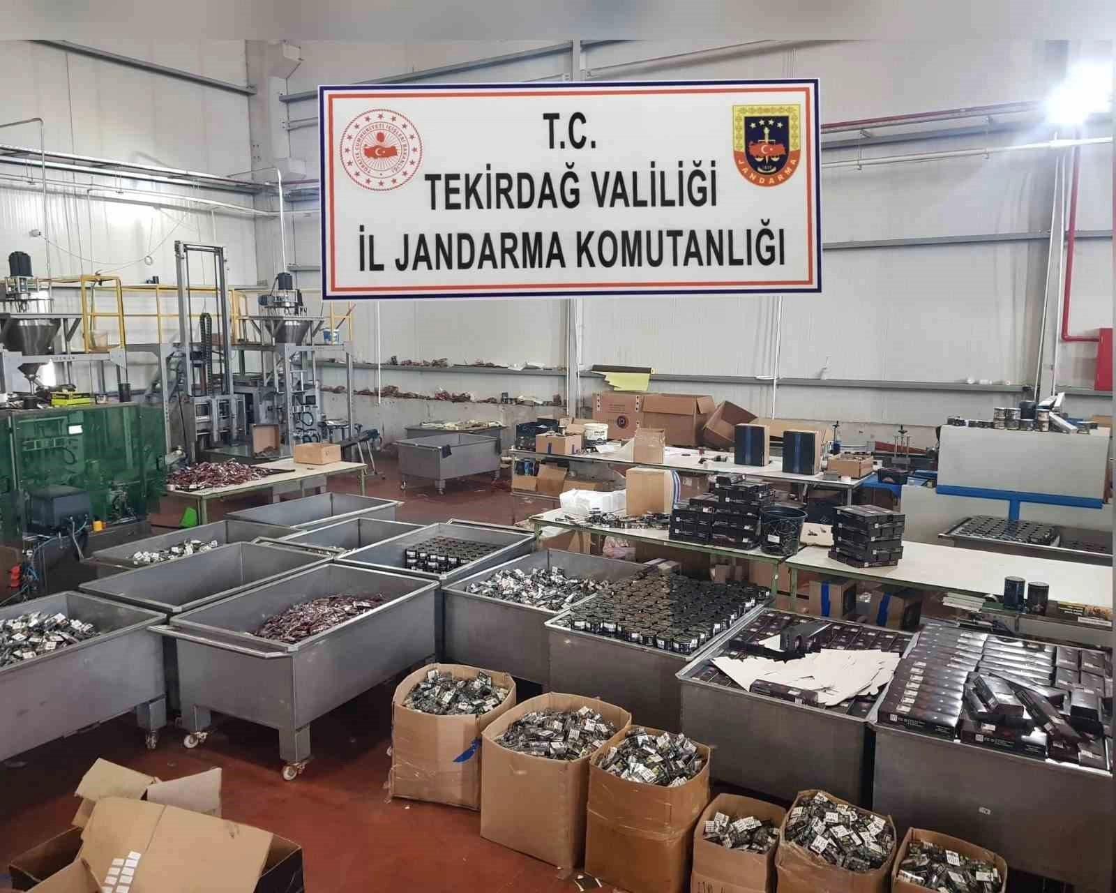 Tekirdağ İl Jandarma Komutanlığınca, Hazine ve Maliye Bakanlığı personeli ile birlikte Çerkezköy Veliköy Mahallesi'ndeki bir fabrikaya operasyon düzenlendi. Operasyonda E.K. isimli şahsa ait tütün fabrikasında, kayıt sistemine bildirim yapılmadan üretilen 50, 250 ve 500 gramlık kutular içerisinde piyasa değeri 3 milyon TL olan 3 ton 100 kilogram nargile tütünü ele geçirildi.