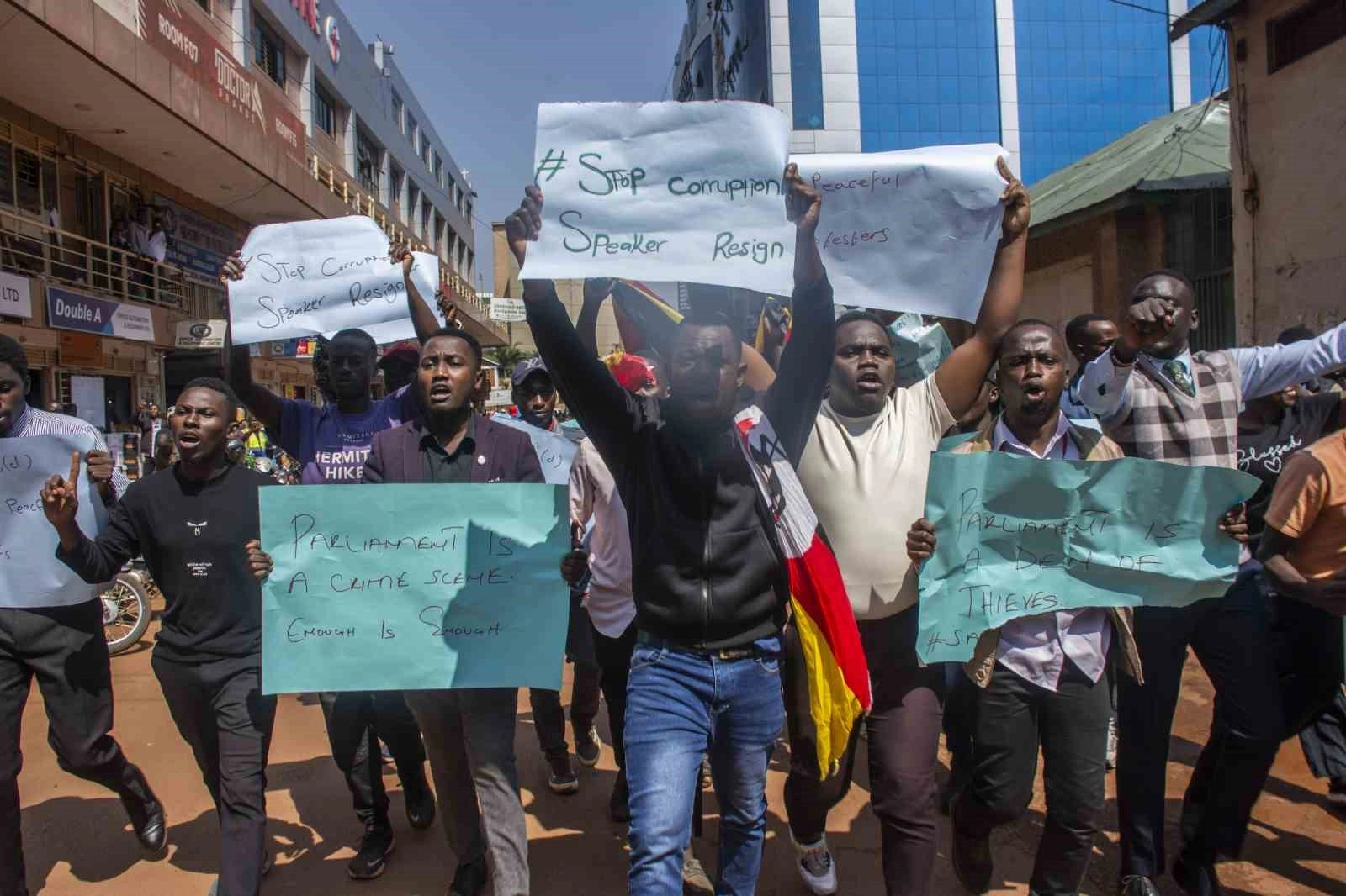 Uganda'da çok sayıda üst düzey kamu görevlisinin de dahil olduğu uzun süredir devam eden yolsuzluk iddialarına karşı gösteri düzenlendi. Gösterilerin polis tarafından yasaklanmasına rağmen dün sokaklara dökülen protestocular başkent Kampala'daki parlamento binasına yürüdü. Güvenlik güçleri, parlamento binasının çevresindeki yolları kapatarak sokaklara barikatlar kurdu. "Yolsuzluğu durdurun" yazılı pankartlar taşıyan protestocular, parlamentoyu "hırsızlar ordusu" olarak adlandırdı.