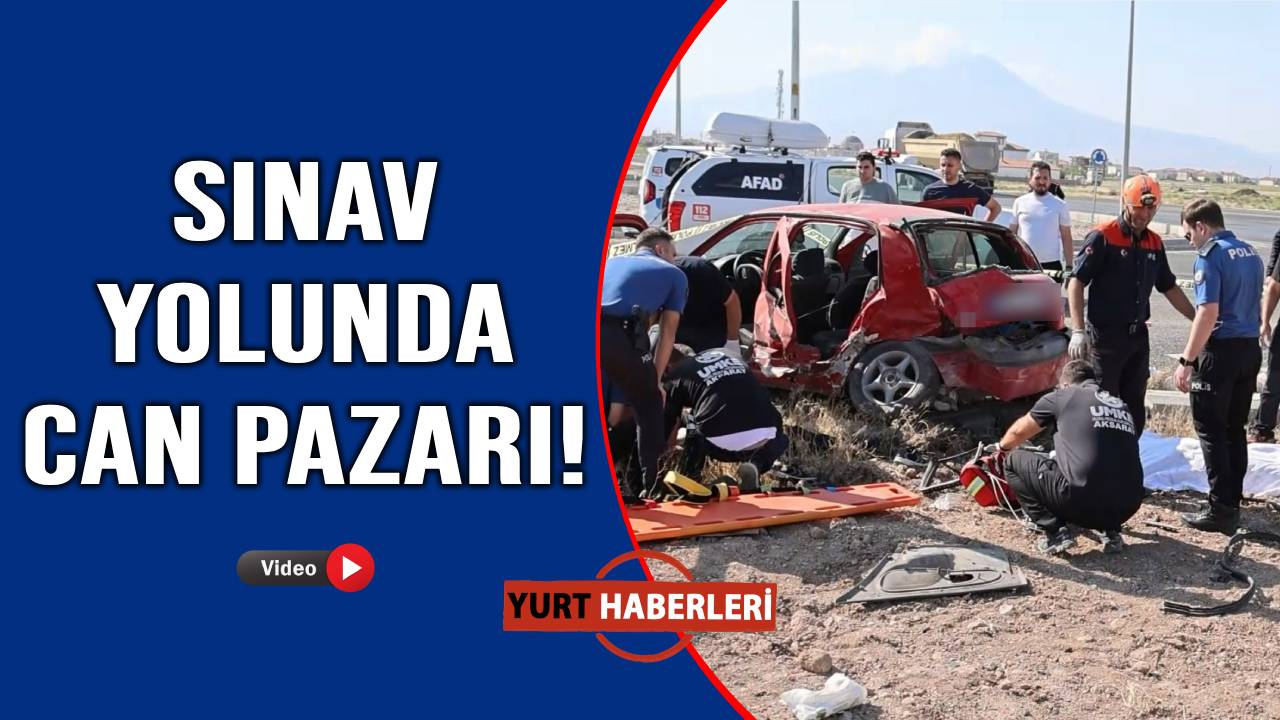 Aksaray'da Yükseköğretim Kurumları Sınavına (YKS) öğrenci götüren hafif ticari araç ile otomobilin çarpışması sonucu meydana gelen trafik kazasında olay yerinde adeta can pazarı yaşandı. Refüje savrulan yaralılara müdahalede polis ve sağlık ekipleri zamanla yarışırken, kazada 1 kişi öldü, 4'ü ağır 10 kişi de yaralandı.
