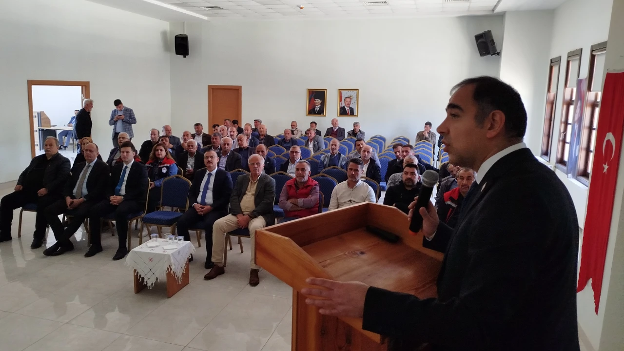 Katılımcıların sorularını da cevaplandıran Baloğlu'na Kaymakam Enver Yılmaz tarafından teşekkür edilip, plaket sunuldu.