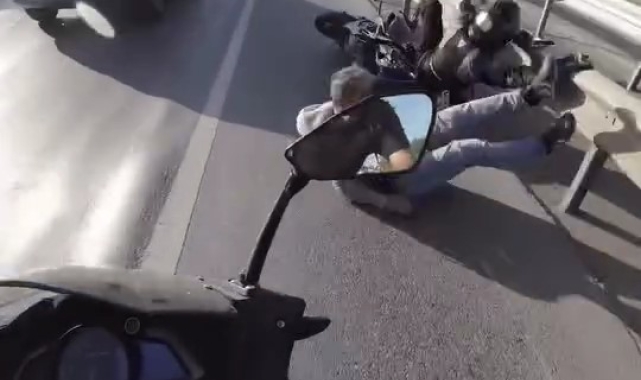 Olay, geçtiğimiz günlerde Üsküdar Altunizade D-100 Karayolu Edirne istikametinde meydana geldi. İddiaya göre, araç trafiğini fırsat bilen iki kişi, refüjden atlayarak yolun karşısına geçmeye çalıştı. Bu sırada emniyet şeridinde seyir halinde olan motosiklet şahıslardan birine çarptı. Çarpmanın etkisiyle motosiklet sürücüsü ve motosikletin çarptığı kişi yere düştü. Kazada yaralanan olmazken, kaza anı başka bir motosikletlinin kask kamerasına yansıdı.