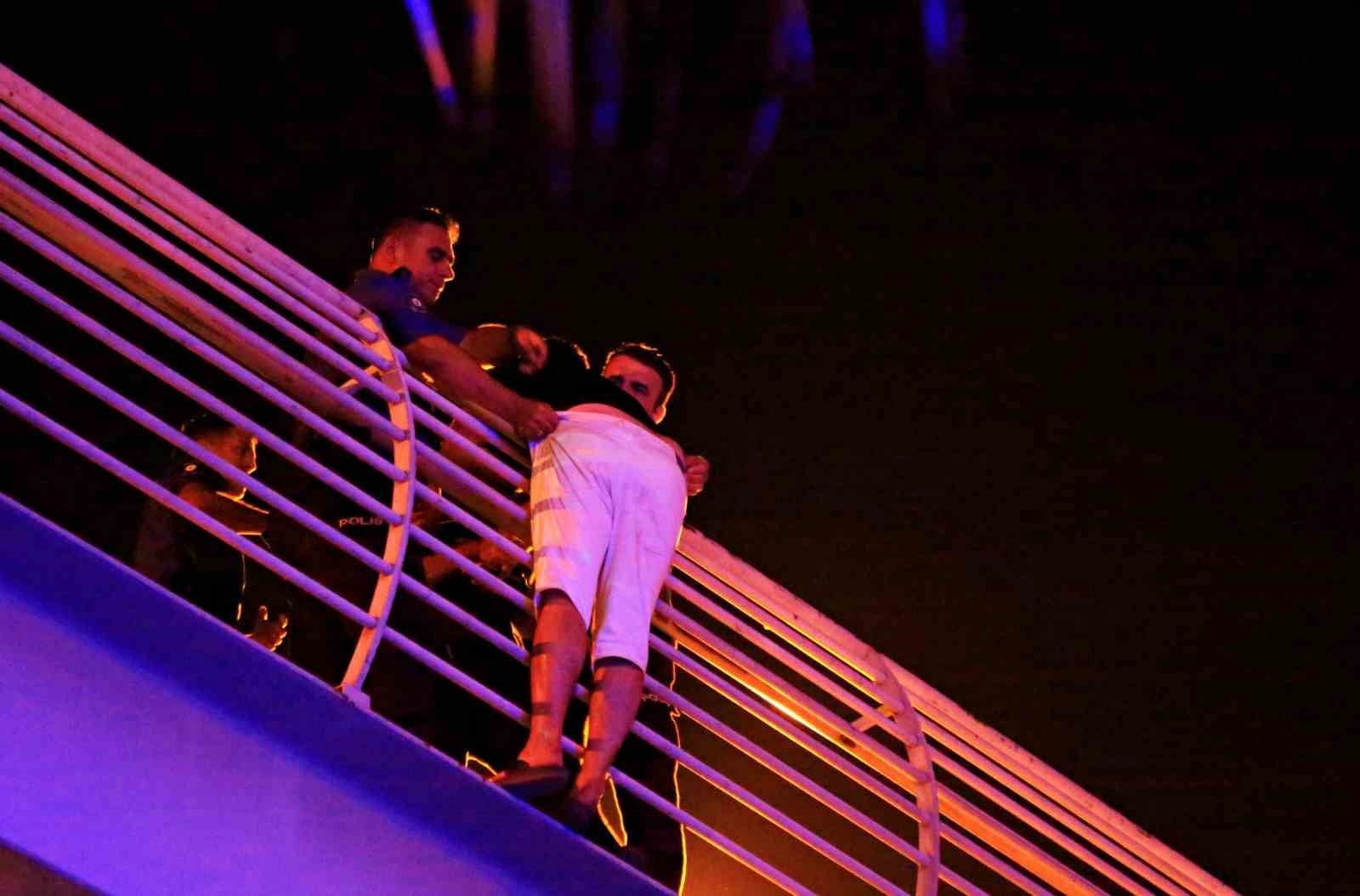 Antalya'da ailevi nedenlerden ötürü bunalıma giren bir genç, araç trafiğinin en yoğun olduğu Gazi Bulvarı'nda bulunan üst geçide çıktı. Polis ekiplerinin bir anlık dalgınlığından faydalanarak yakaladığı şahıs, kelepçelenerek polis merkezine götürüldü.