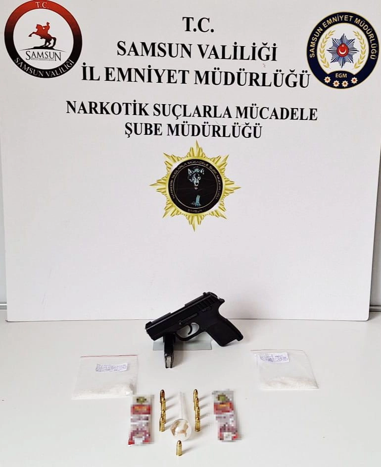 Edinilen bilgiye göre, Samsun Emniyet Müdürlüğü Narkotik Suçlarla Mücadele Şube Müdürlüğü ekipleri, İlkadım ilçesi Derecik Mahallesi'nde B.K. isimli şahsın bulunduğu araçta arama yaptı. Yapılan aramada, 22 gram metamfetamin, 1 adet ruhsatsız tabanca, 9 adet tabanca fişeği, ele geçirildi. Olayla ilgili B.K. gözaltına alındı. Tahkikat devam ediyor.
