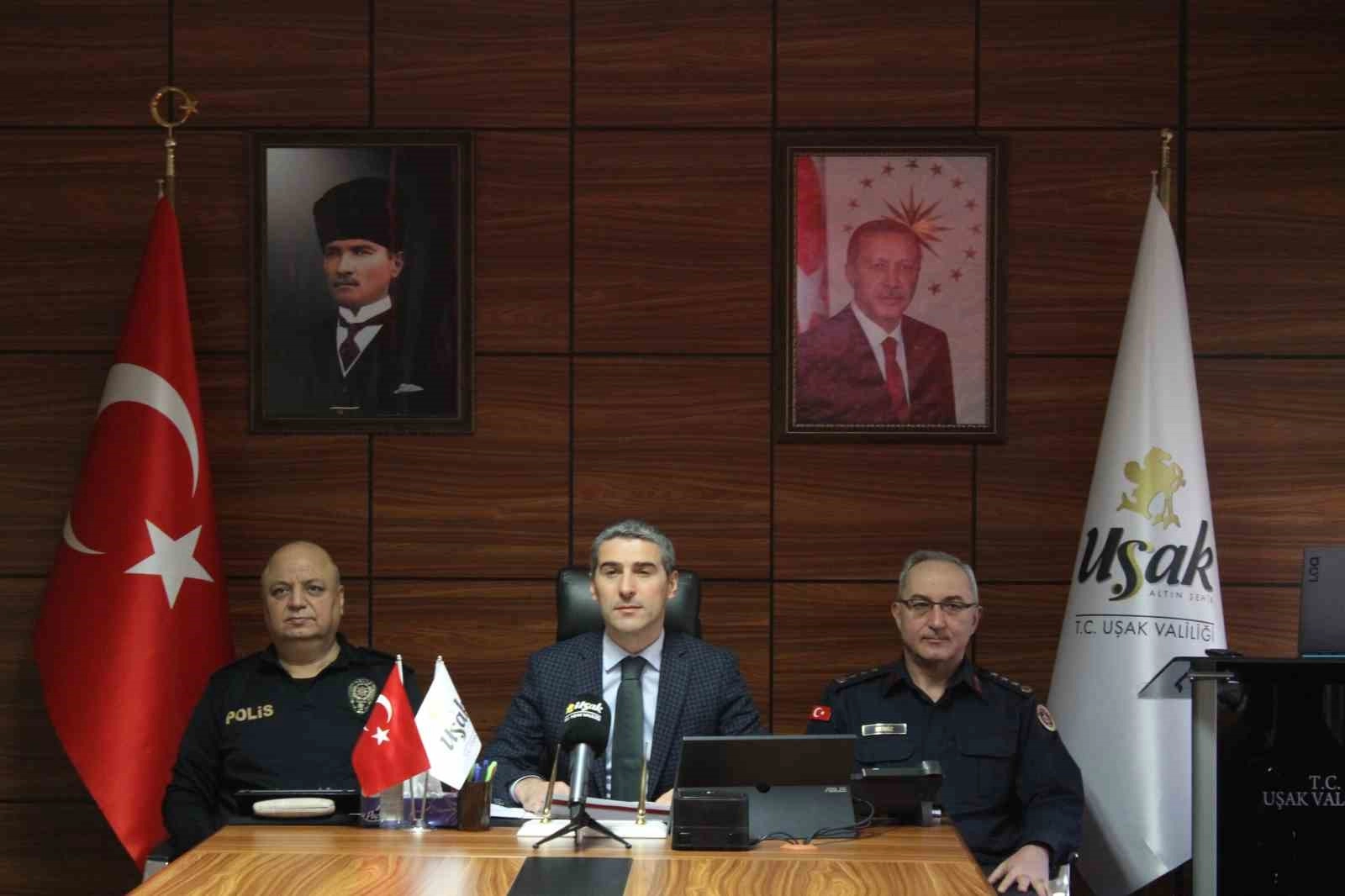 Uşak Valisi Naci Aktaş, valilik binasında düzenlediği basın toplantısında il genelindeki güvenlik değerlendirme verilerini vatandaşlar ile paylaştı. İl Emniyet Müdürü Mehmet Ali Kolcu ve İl Jandarma Komutanı Kıdemli Albay Fahri Semiz ile birlikte Uşak'taki kentteki güvenlik konuları hakkında bilgi aktaran Vali Aktaş, asayiş, terör, kaçakçılık ve organize suçlar, göçmen kaçakçılığı, siber ile trafik konularına değindi.