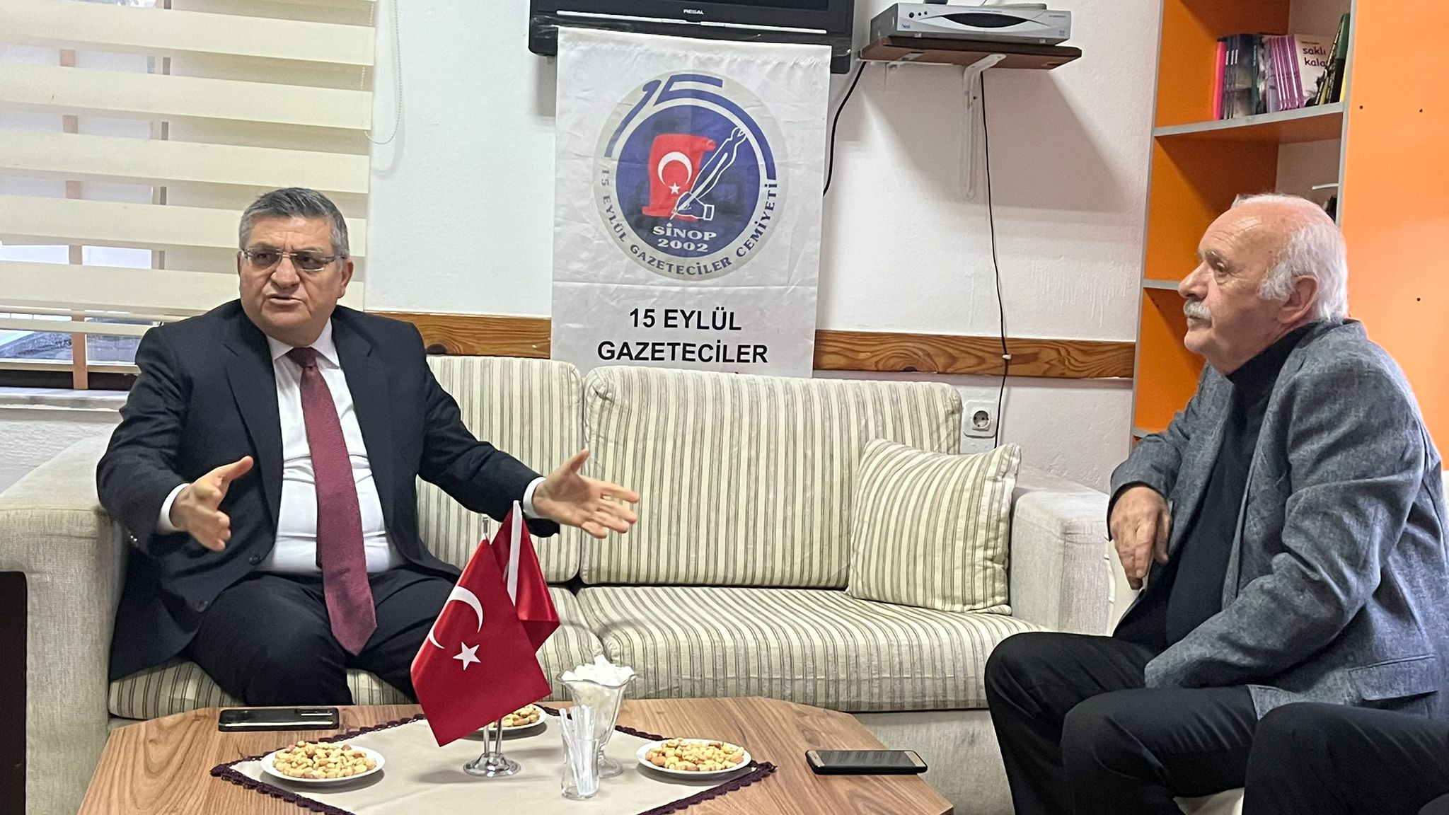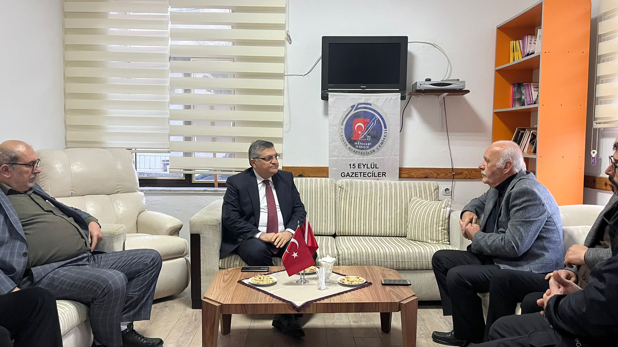 Sinop Valisi Dr. Mustafa Özarslan, Sinop 15 Eylül Gazeteciler Cemiyeti'ni ziyaret etti. Ziyaret sırasında, Cemiyet Başkanı Cengiz Demirel ve cemiyet üyeleriyle bir araya gelen Vali Özarslan, Sinop'ta yürütülen kamu hizmetleri hakkında görüş alışverişinde bulundu. Basın mensuplarının vatandaşların kamu hizmetlerine ilişkin şikayet, eleştiri ve yorumlarını yansıtmalarının kendisi için değerli olduğunu belirten Vali Özarslan, misafirperverlikleri için teşekkür etti. Cemiyet Başkanı Cengiz Demirel ve üyeleri de ziyaretten duydukları memnuniyeti dile getirerek, Vali Özarslan'a teşekkürlerini sundular.
