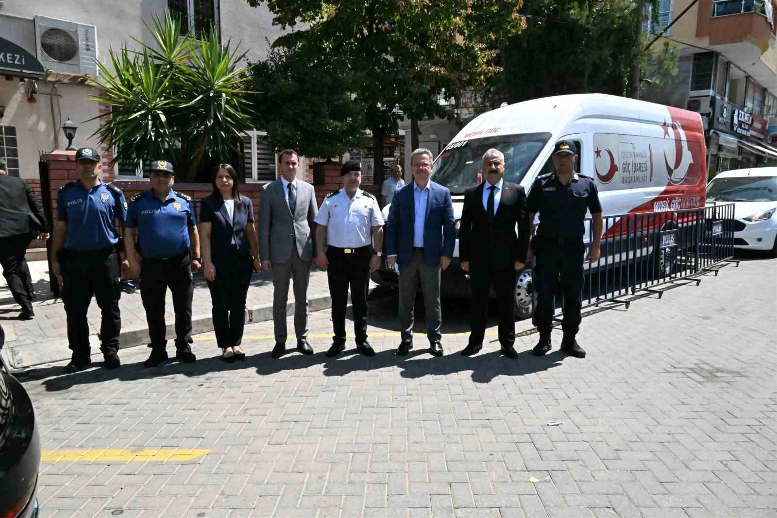 Manisa Valisi Enver Ünlü, Turgutlu Polis Merkezi önünde görev yapan gezici "Mobil Göç" aracının çalışmalarını yerinde inceledi.