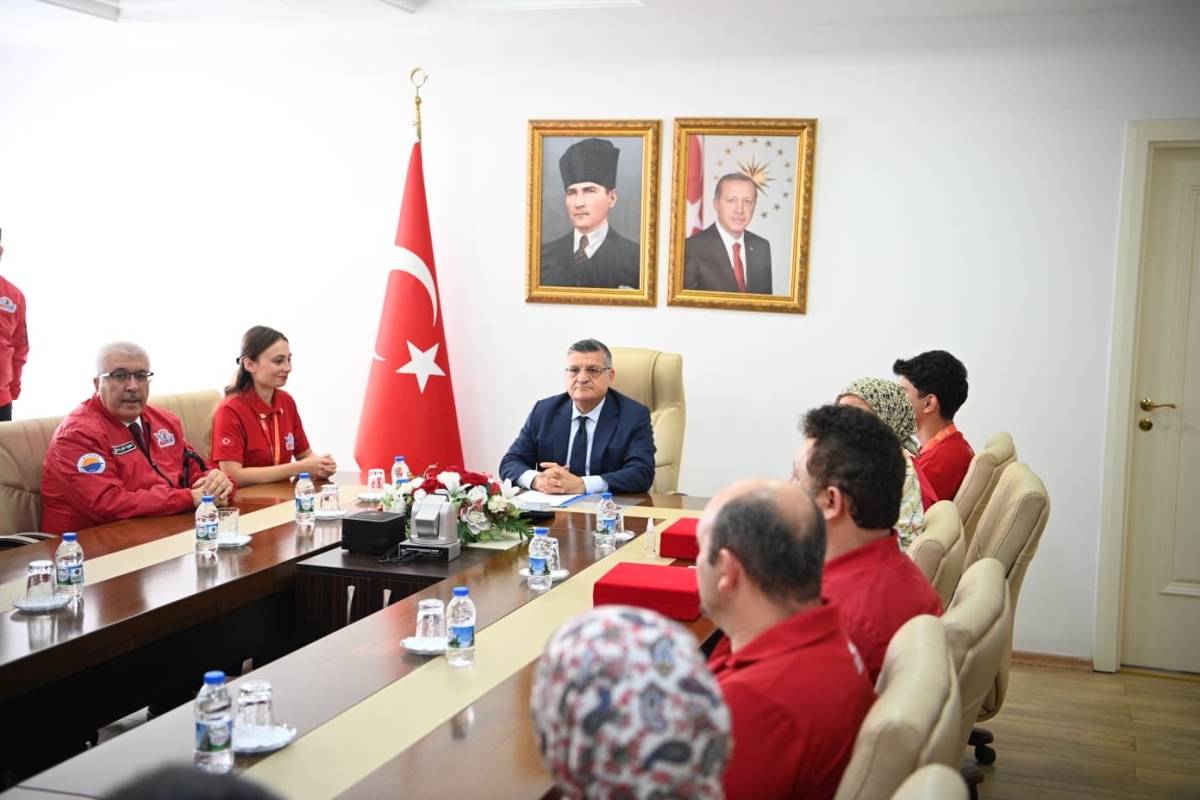 Sinop Valisi Dr. Mustafa Özarslan, TEKNOFEST 2025 Finalleri’nde önemli dereceler elde eden Sinop Üniversitesi öğrencilerini makamında kabul etti.