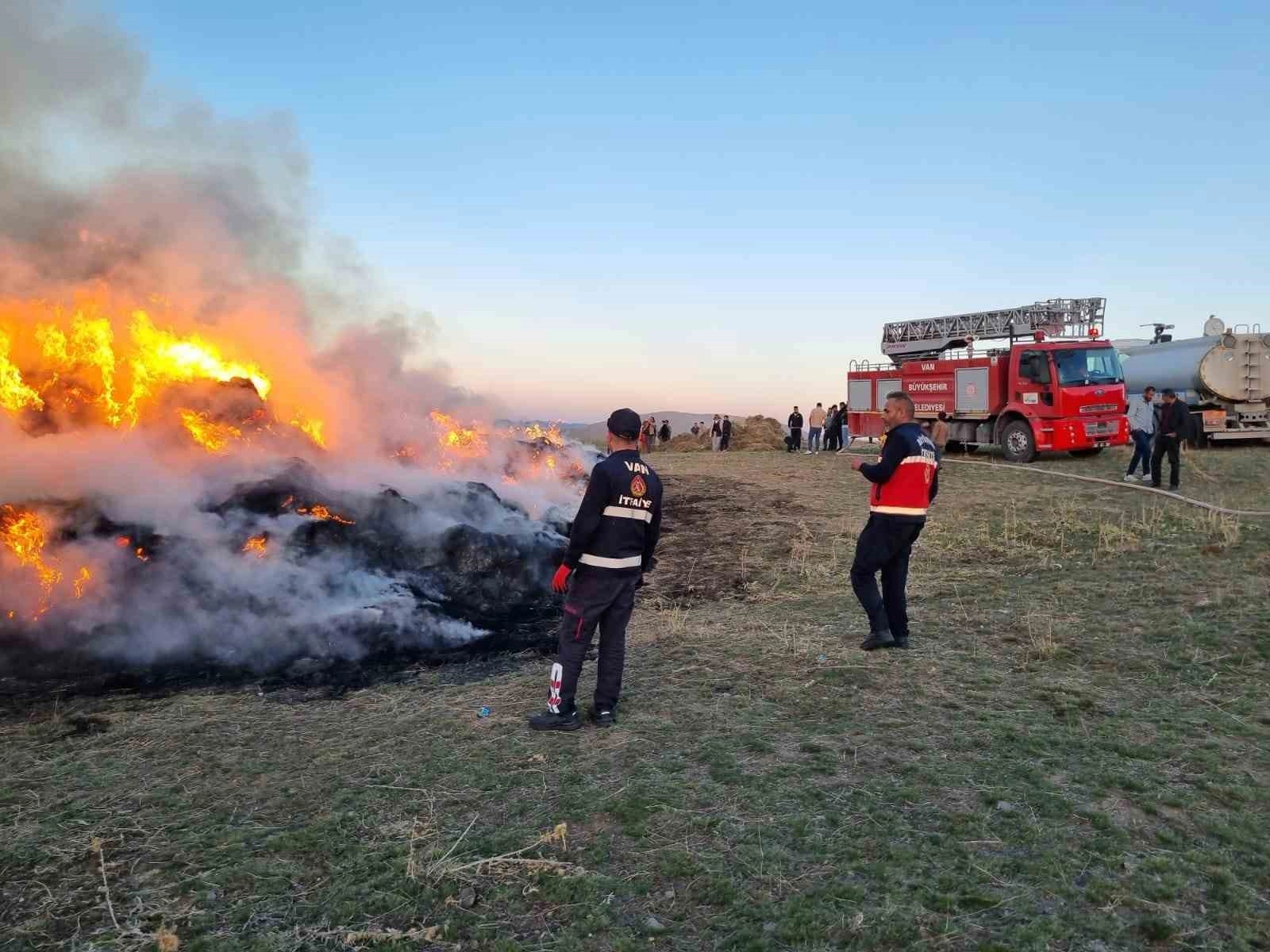 Van'ın Çaldıran ilçesinde ot yığınında çıkan yangın, itfaiye ekipleri tarafından çevre evlere sıçramadan söndürüldü. Yangında 9 bin bağ ot kül oldu.