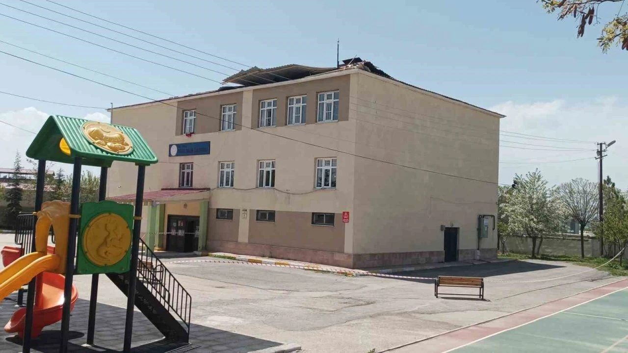 Van’ın Tuşba ilçesinde sabah saatlerinde etkili olan fırtına bir okulun çatısını uçurdu.