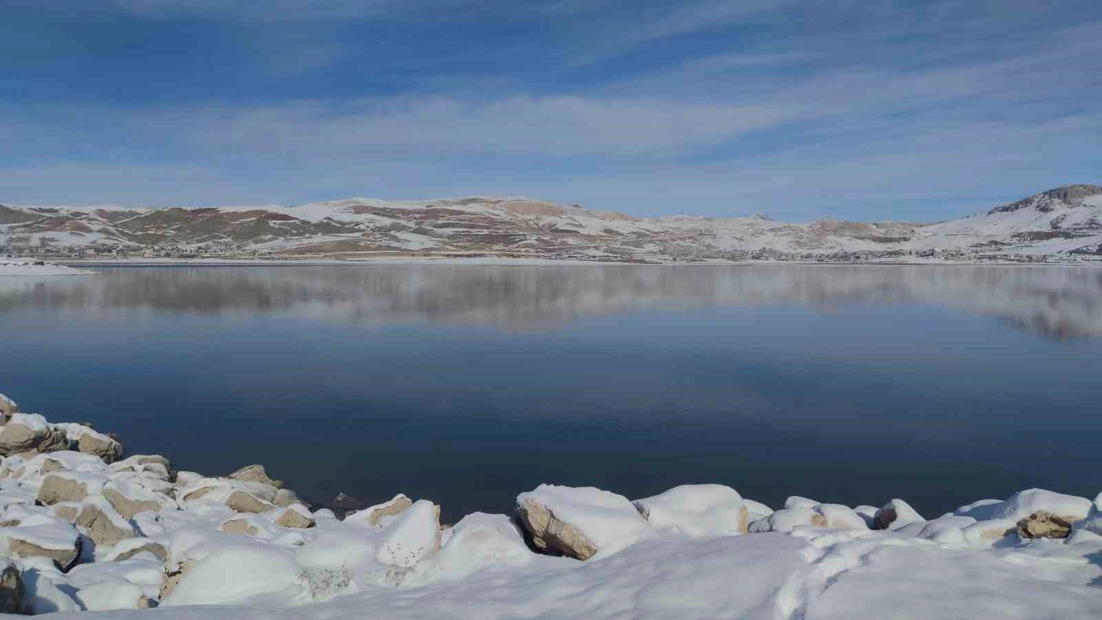 Van'da sulama amaçlı kullanılan Sıhke Göleti'nin yüzeyi kısmen dondu.