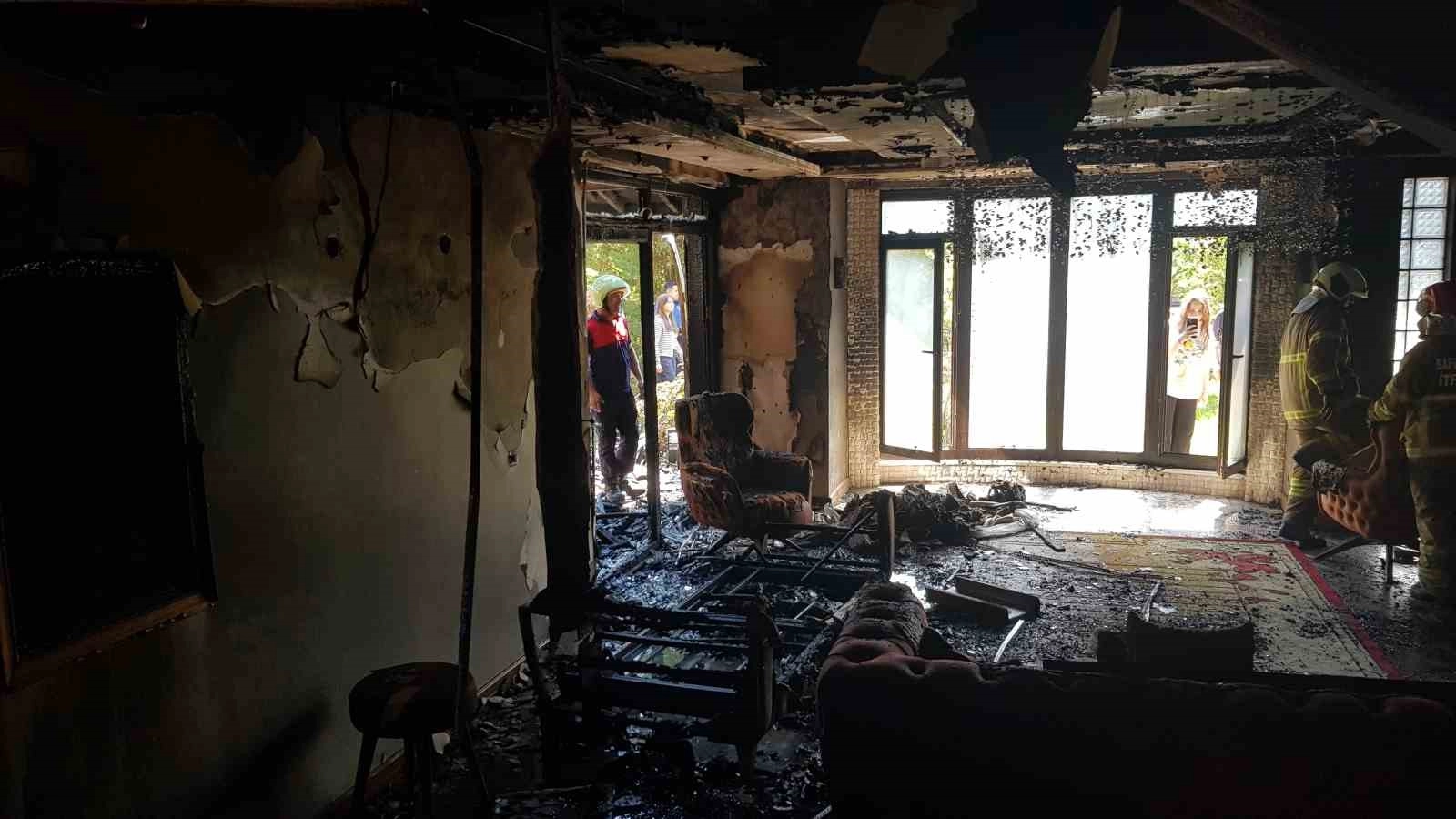 Yangın nedeniyle villanın giriş katı kullanılmaz hale gelirken olayla ilgili inceleme başlatıldı.
