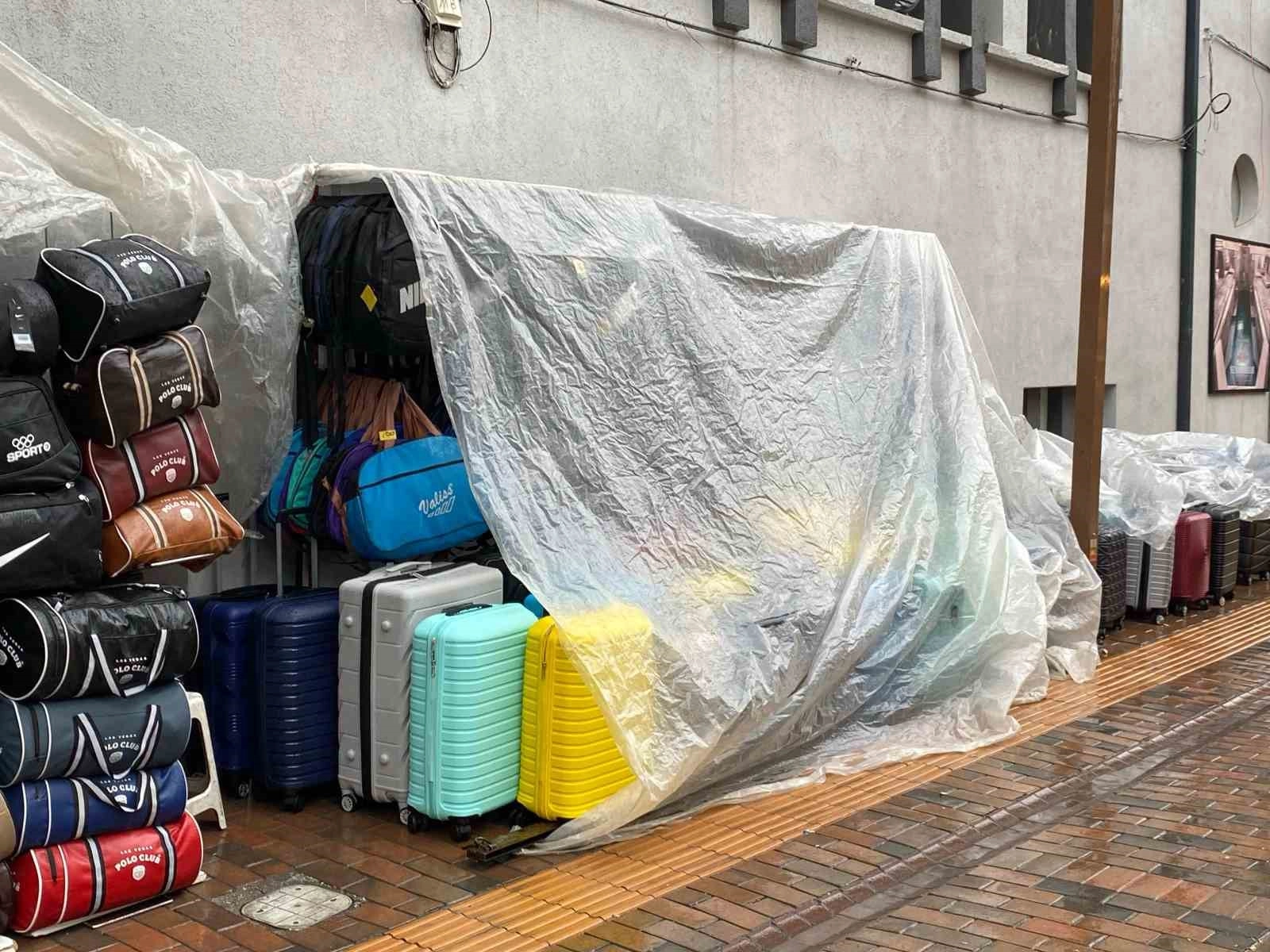 Sabah saatlerinden itibaren kent genelinde etkinli olan şiddetli yağmur, hayatı olumsuz etkiledi. Günün ilk saatlerinden itibaren etkili olan yağmur, kent merkezinde hizmet veren esnafa zor anlar yaşattı. Yağan yağmurdan ürünlerini korumak isteyen esnaf, çözümü ürünlerinin üstüne branda örtmekte buldu.